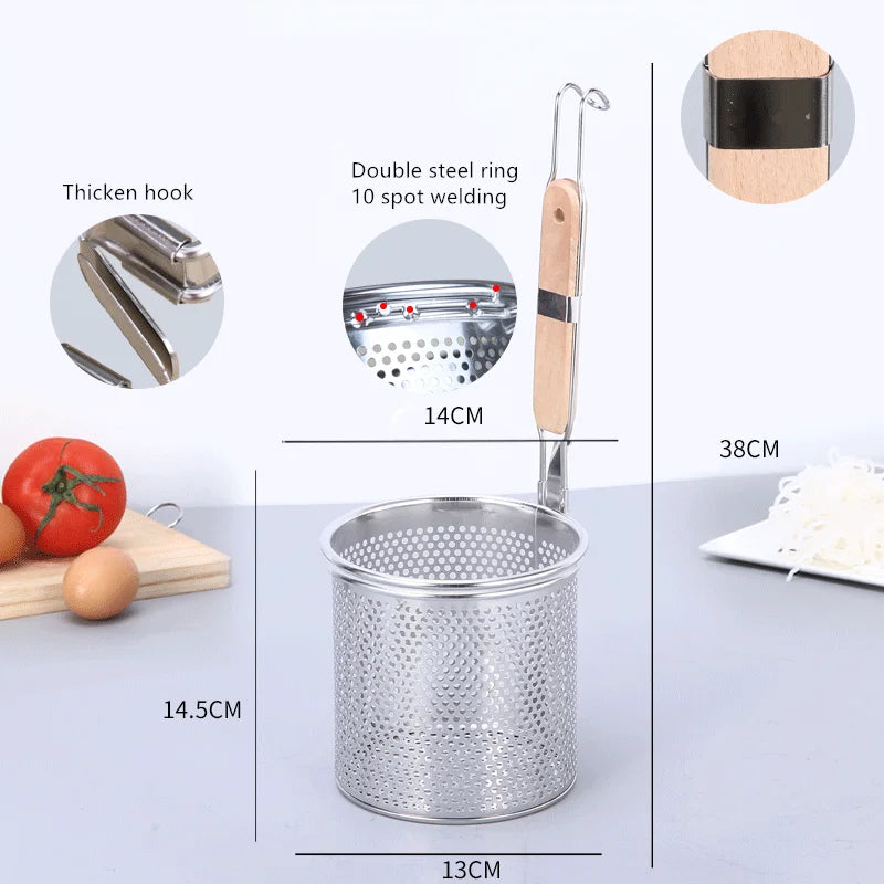 304 Stainless Steel Colander Spicy Hot Powder Fence Commercial Filter Net Noodle Basket Household Hot Vegetable Basket Slip Net