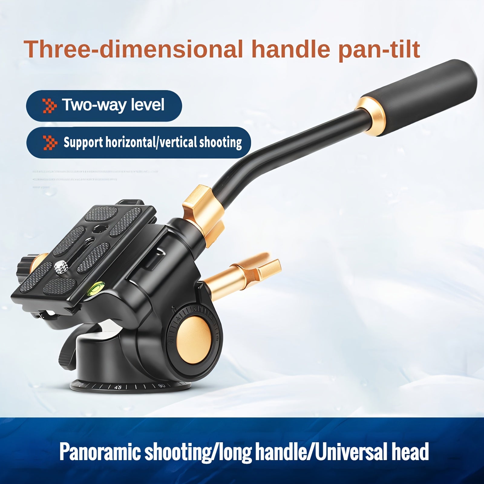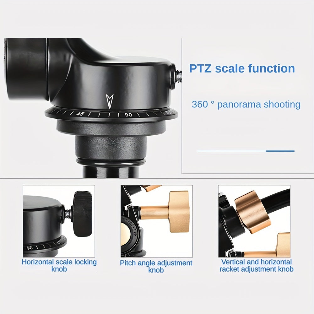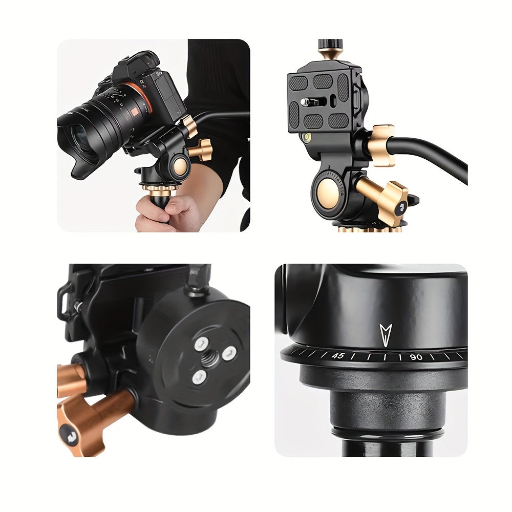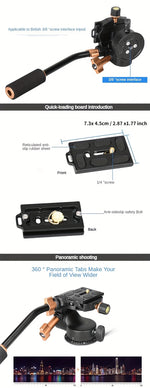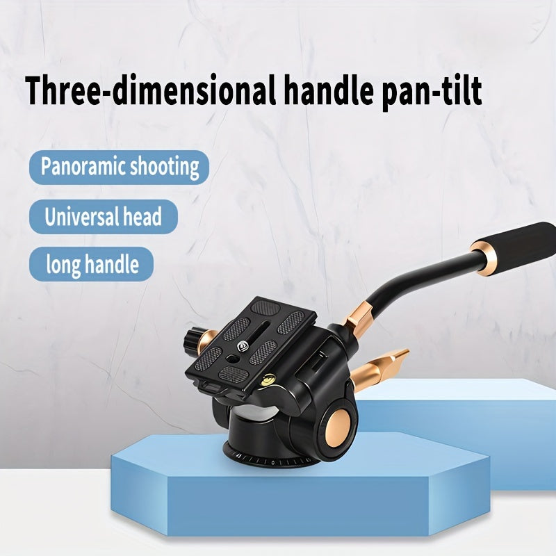 360° Pan-Tilt Head with Long Handle for Photography & Video, Smooth Damping Control, Aluminum Alloy, 1/4" & 3/8" Interfaces, Supports Up to 5kg