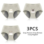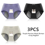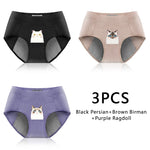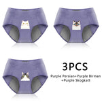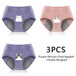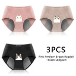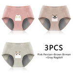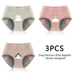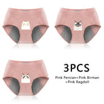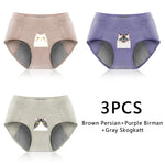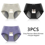 3PCS Cotton Menstrual Panties Leak Proof Breathable Cartoon cat Panties Woman Women Girls Physiological Pants Women's Intimates