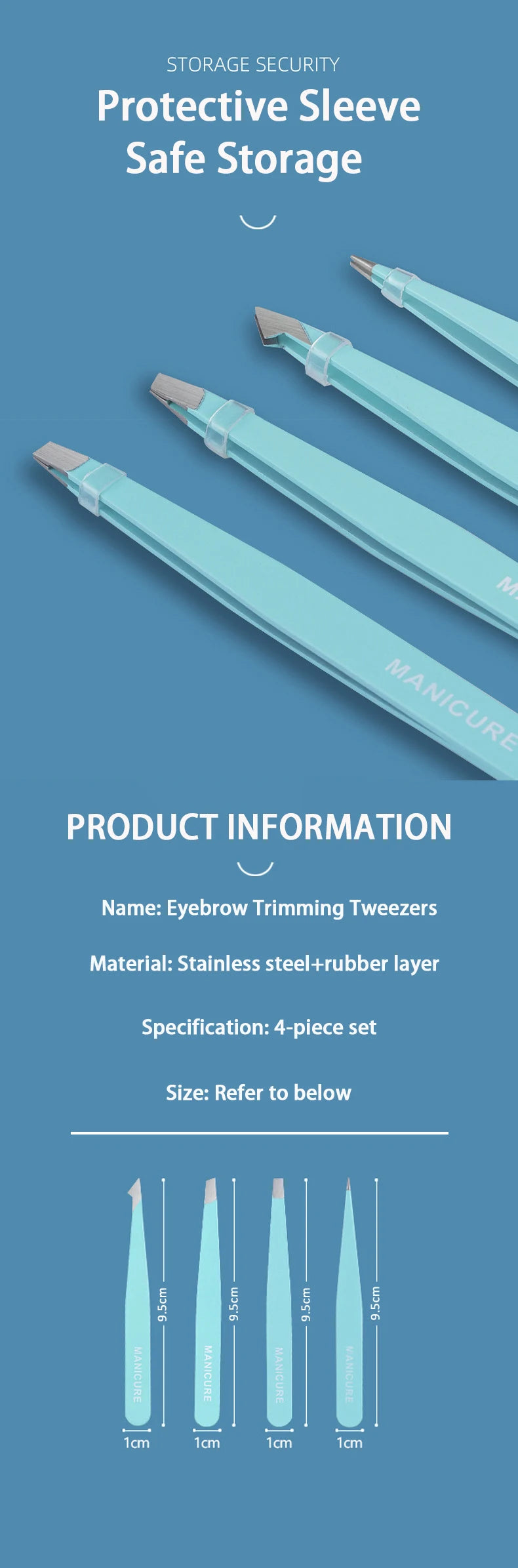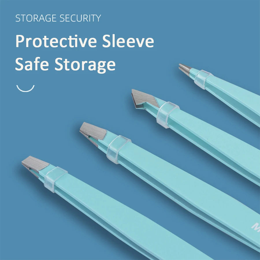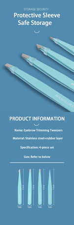 This 4 - piece set comes with four different styles of tweezers, each designed for specific eyebrow - grooming tasks. There's a straight - tipped tweezer for general hair removal and shaping, a slant - tipped tweezer that is perfect for following the natural curve of the eyebrow and removing multiple hairs in one go, a pointed - tipped tweezer for targeting those hard - to - reach and fine hairs, and a curved - tipped tweezer for gently plucking hairs from the inner and outer corners of the eyebrow. This variety of styles allows you to customize your eyebrow - grooming routine based on your individual needs and preferences.