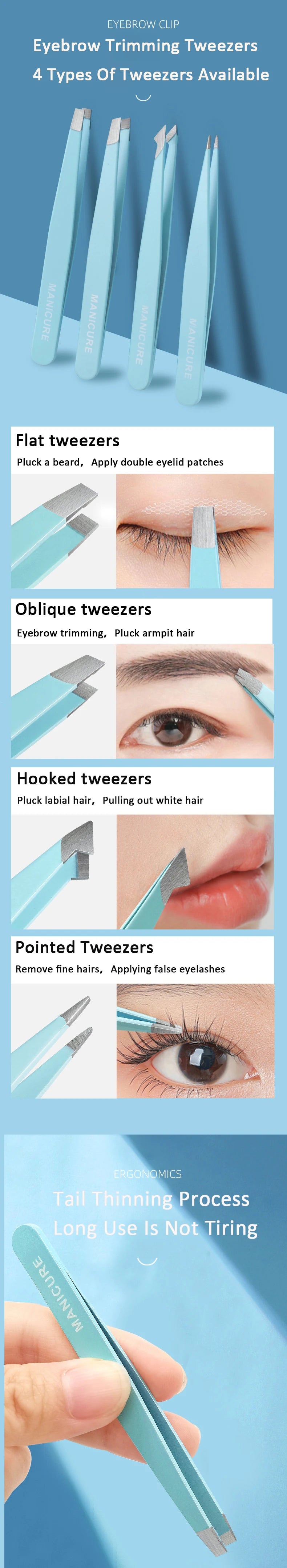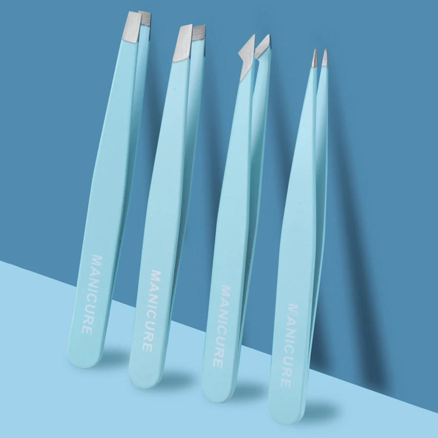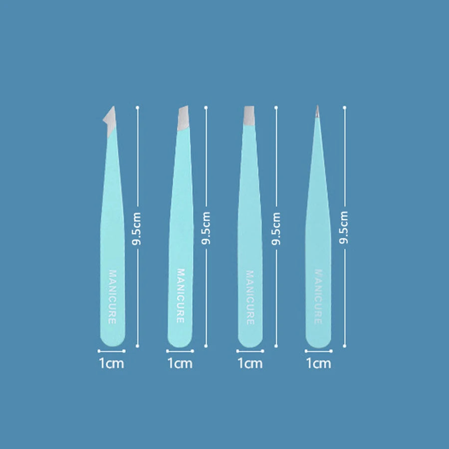 4 Pcs Colorful Eyebrow Tweezer Hair Beauty Fine Hairs Puller Stainless Steel Slanted Eye Brow Clips Removal Makeup Tools
