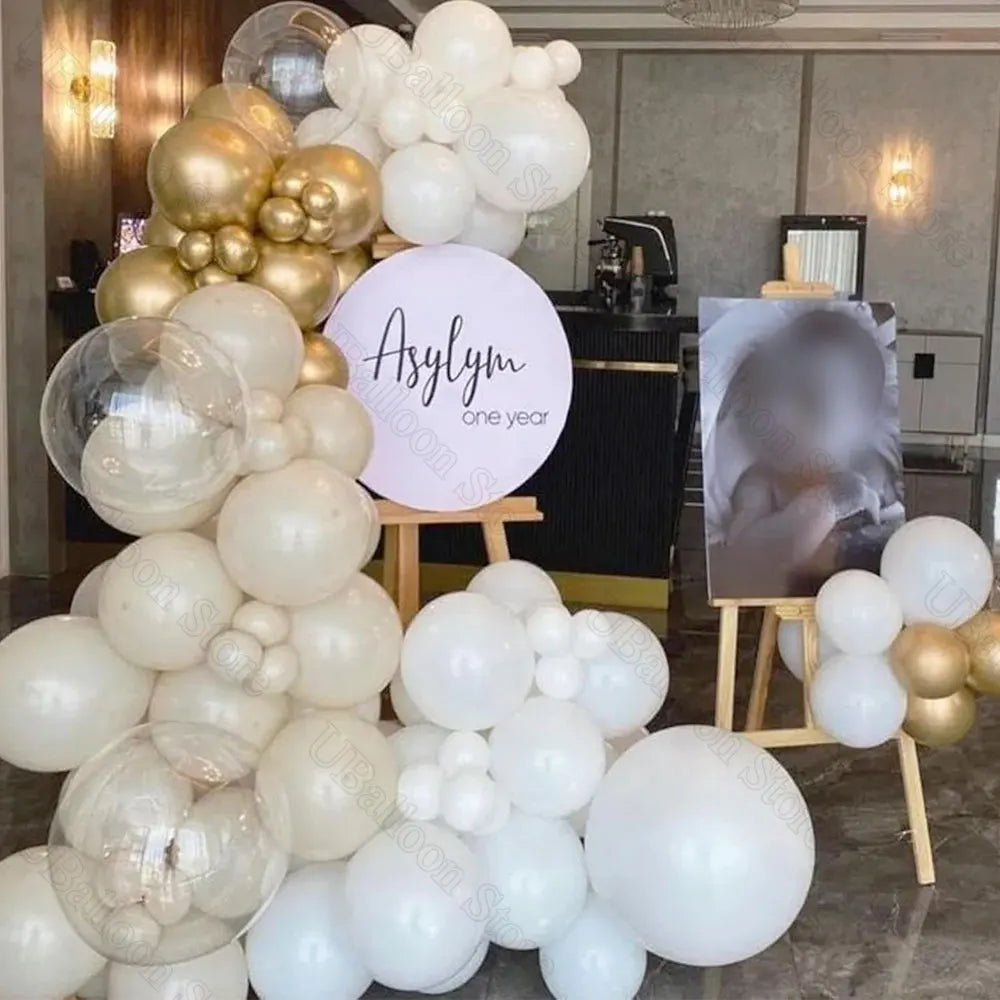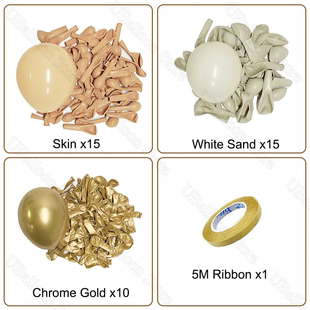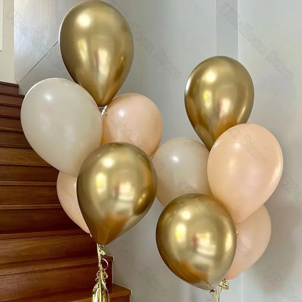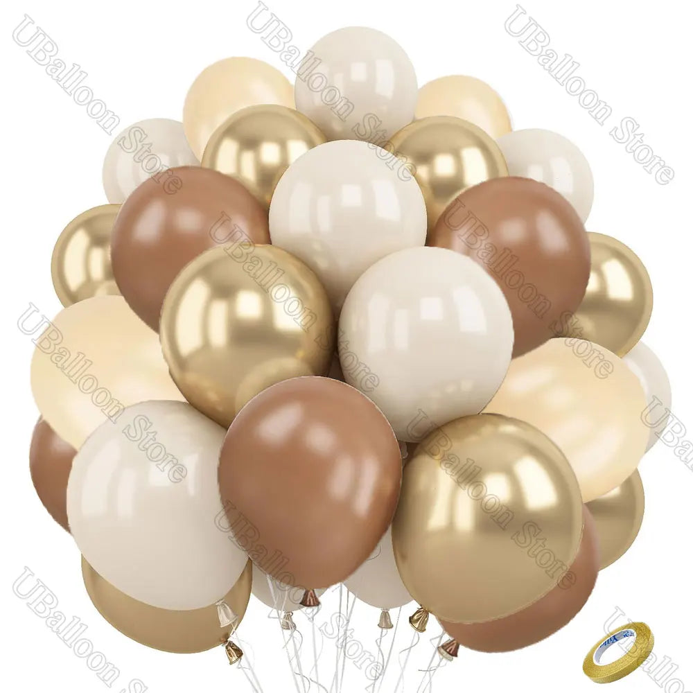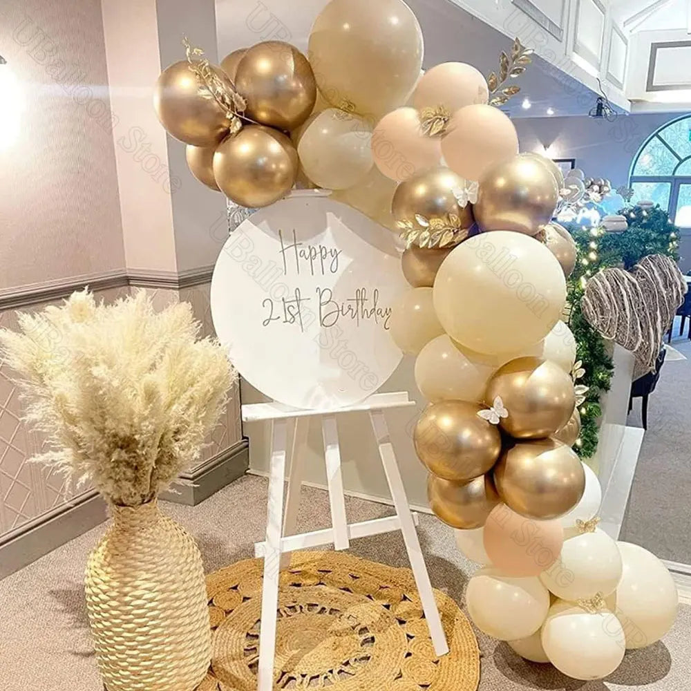 40Pcs White Sand Latex Balloons 10Inch Boho Sand White Metal Chrome Gold Balloons for Birthday Wedding Baby Shower Party Decor