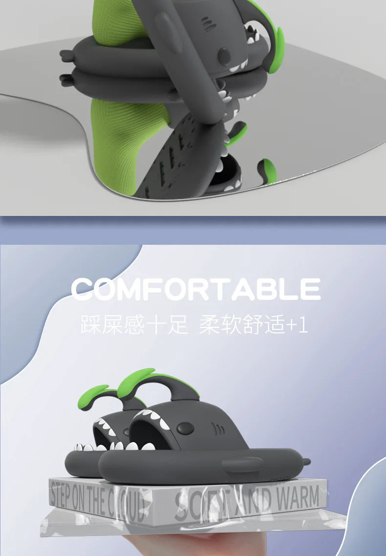 4cm Thick Sole Shark Slippers Women Couple's Indoor And Outdoor Lantern Fish Slides Man‘s Anti Skid Home Cool Shoes 2023 Summer