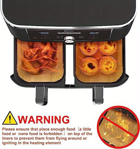 50/100/150/200pcs Air Fryer Disposable Paper Liners Rectangle, Non-Stick Parchment Baking Paper For Ninja Dual Air Fryer, Air Fryer Accessories, Oil Proof & Waterproof Kitchen Accessories, Baking Supplies