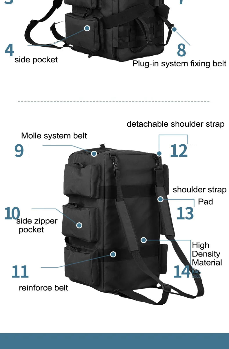 55L Luggage Duffel Bag Camping Backpack Tactical Large Bags Men's Hiking Travel Mountaineering Trip Utility Gym Weekend Duffle
