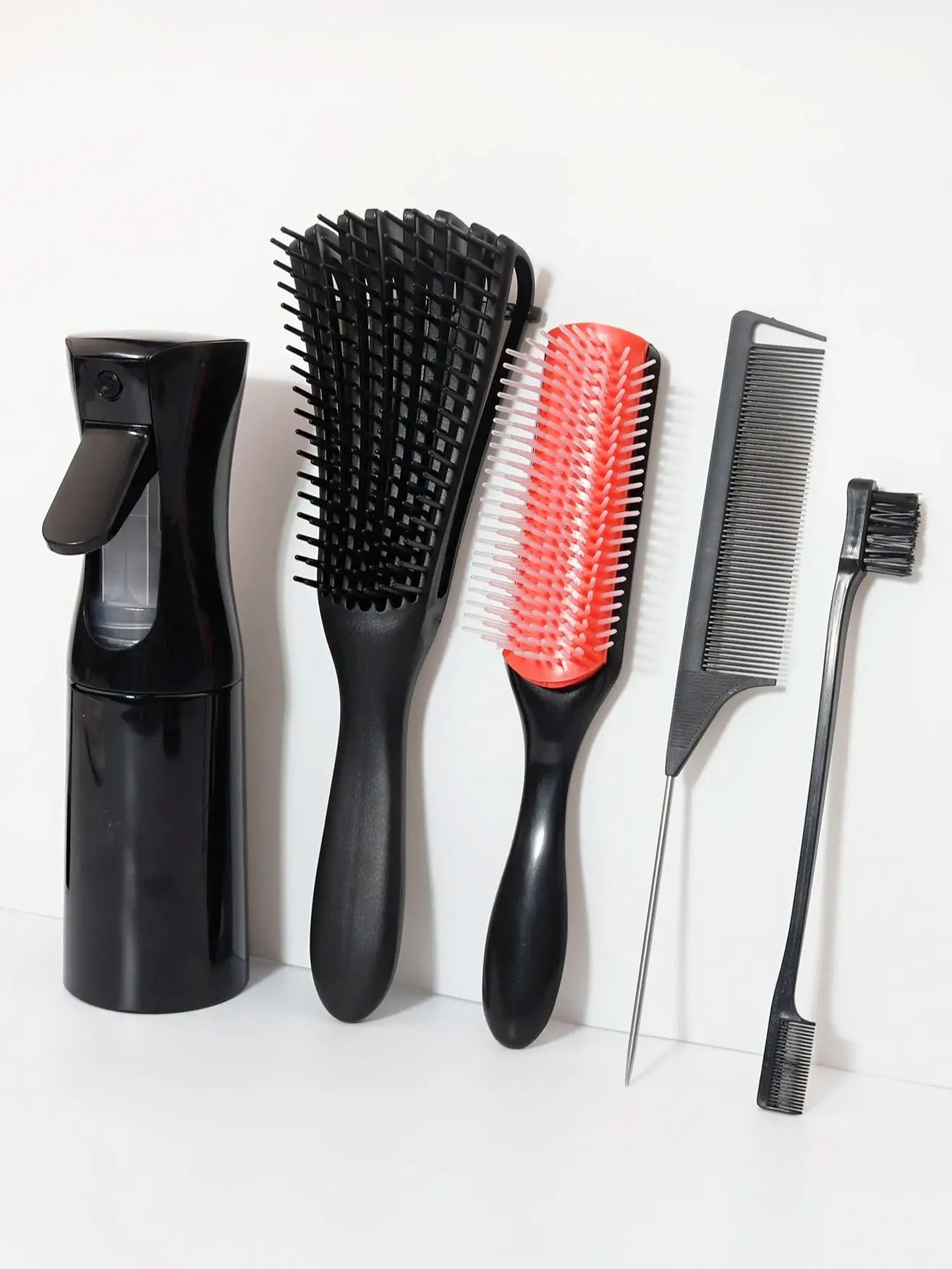 Detangling Anti Static Hair Brush - Curved Rat Tail Comb Set - 5pcs/set