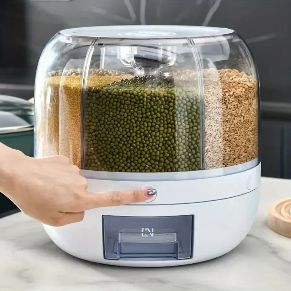 6-in-1 Rice Dispenser Food High-capacity Moisture-proof Container 360 Degree Sealed Dry Cereal Grain Bucket Kitchen Storage Box