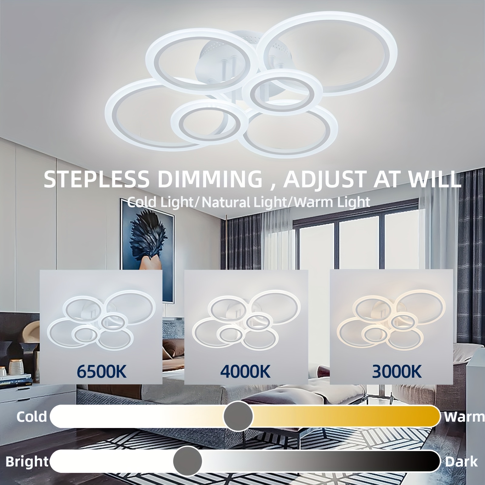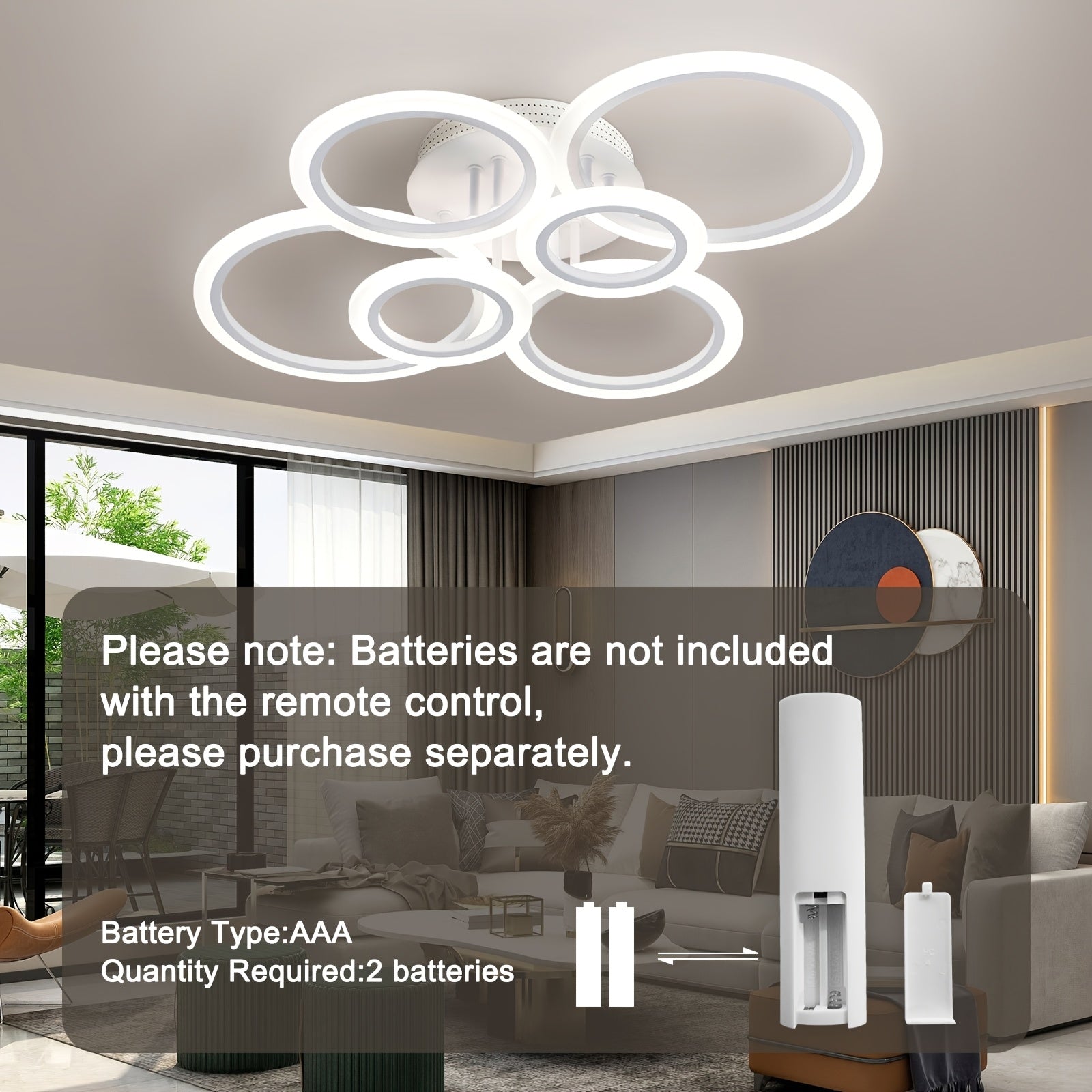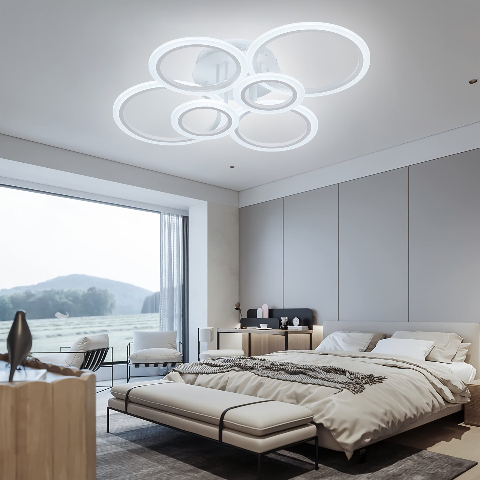 6-Ring LED Flush Mount Ceiling Light, 78.74cm - Dimmable 75W, Remote Controlled 3000K-6500K, Modern Oil-Rubbed Metal Finish, Perfect for Living Room, Kitchen, Bedroom, Office, Bedroom Lighting | Modern Ceiling Light | Adjusta