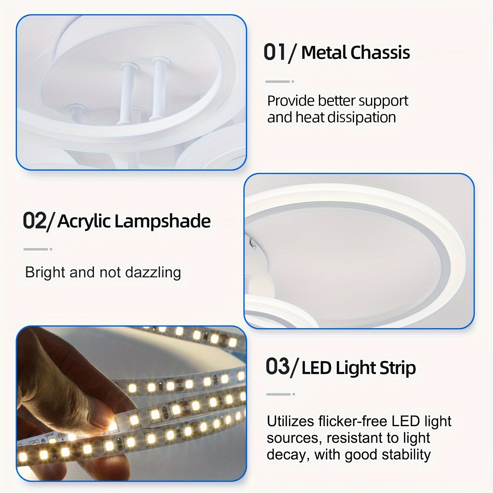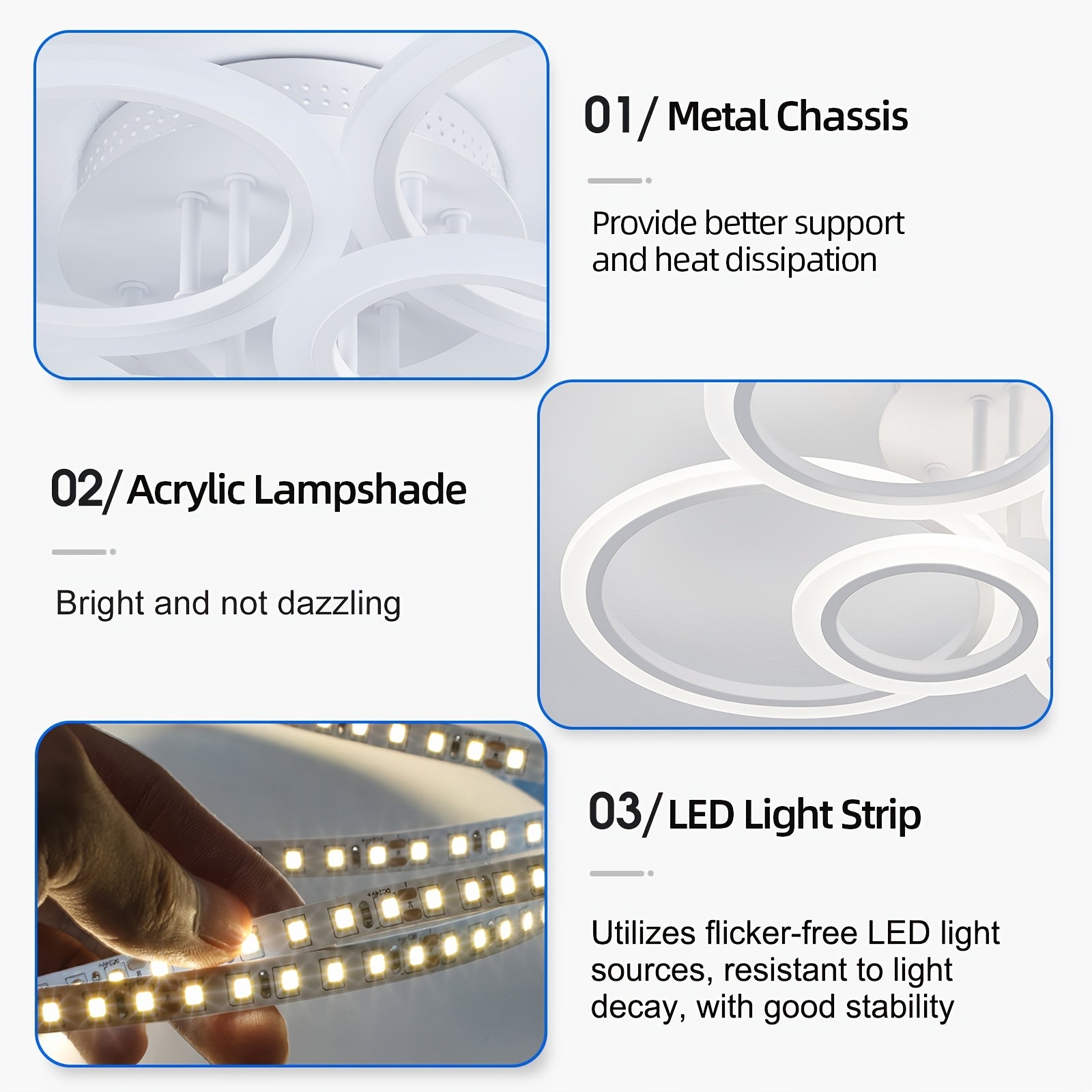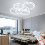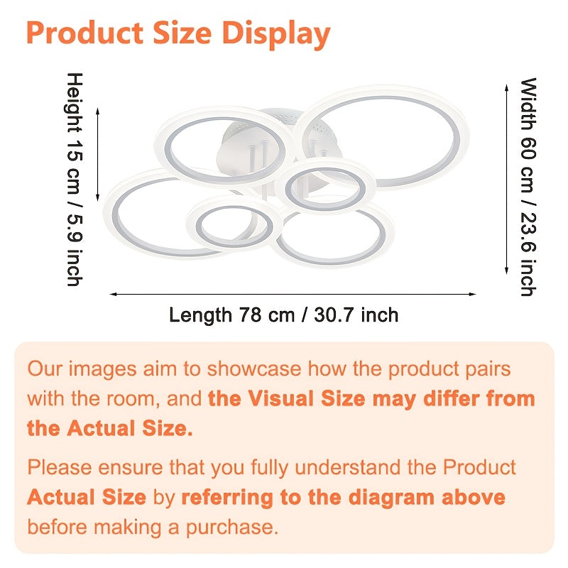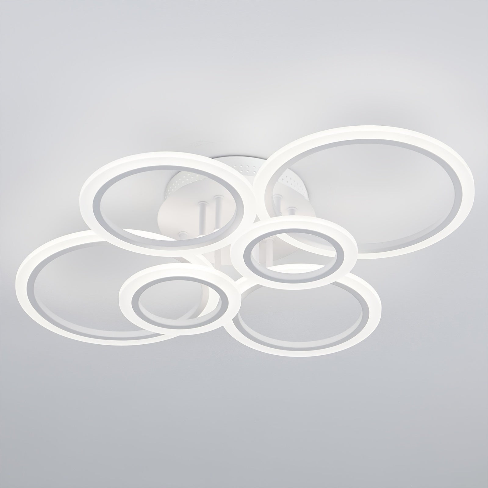 6-Ring LED Flush Mount Ceiling Light, 78.74cm - Dimmable 75W, Remote Controlled 3000K-6500K, Modern Oil-Rubbed Metal Finish, Perfect for Living Room, Kitchen, Bedroom, Office, Bedroom Lighting | Modern Ceiling Light | Adjusta