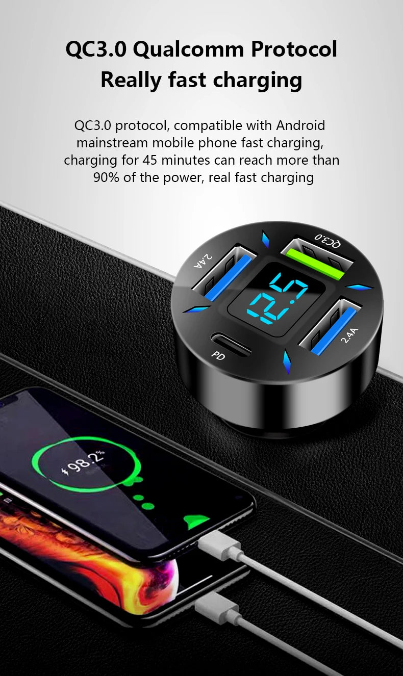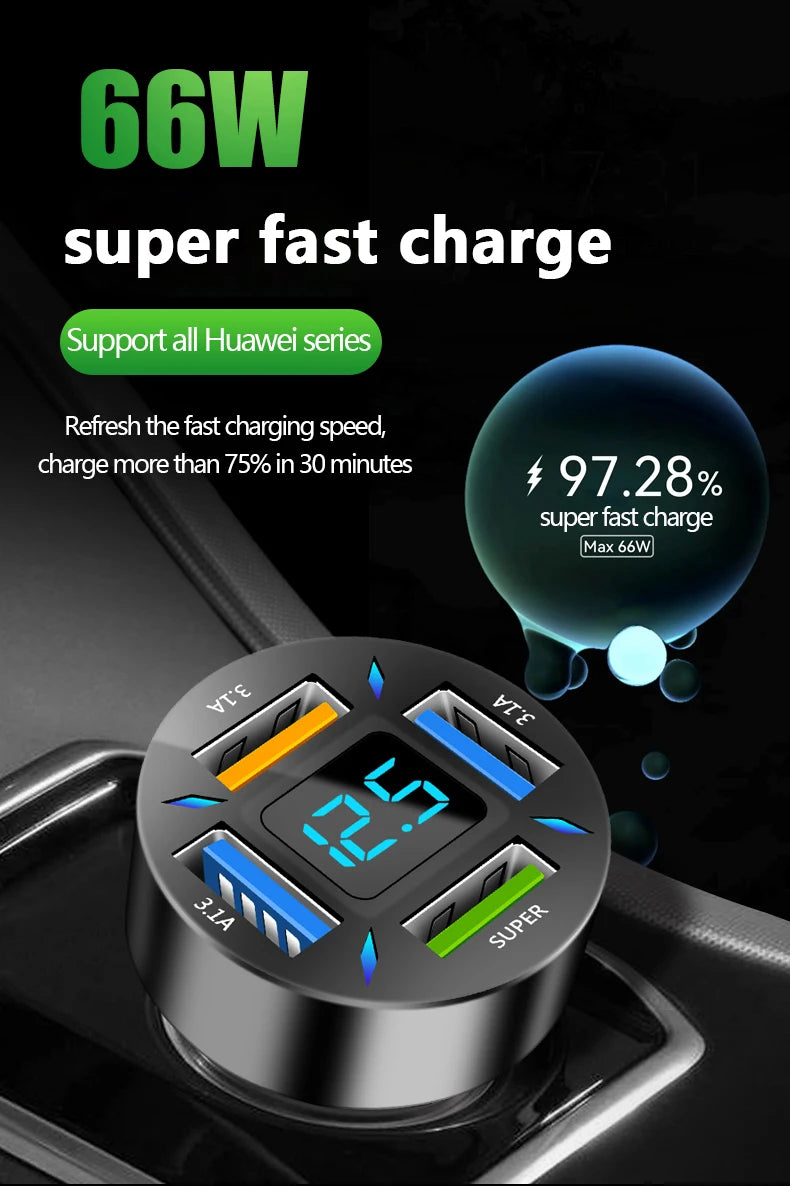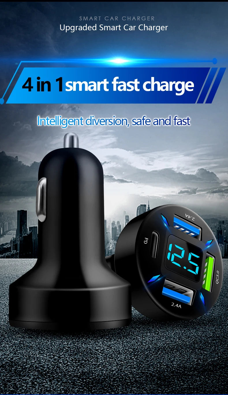 66W 4 Ports USB Car Charger Fast Charging PD Quick Charge 3.0 USB C Car Phone Charger Adapter For iPhone 13 12 Xiaomi Samsung