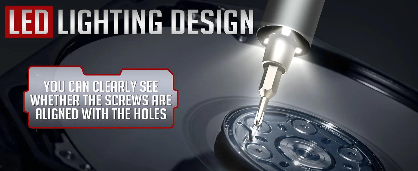 With a rotation speed of 200 RPM, this tool delivers precise torque, making it ideal for assembling and repairing an extensive range of items, including furniture, air conditioners, faucets, surge protectors, desktops, computers, watches, cameras, and more. The innovative LED light design further enhances its utility by illuminating screw holes in low-light conditions, ensuring optimal visibility and precision.