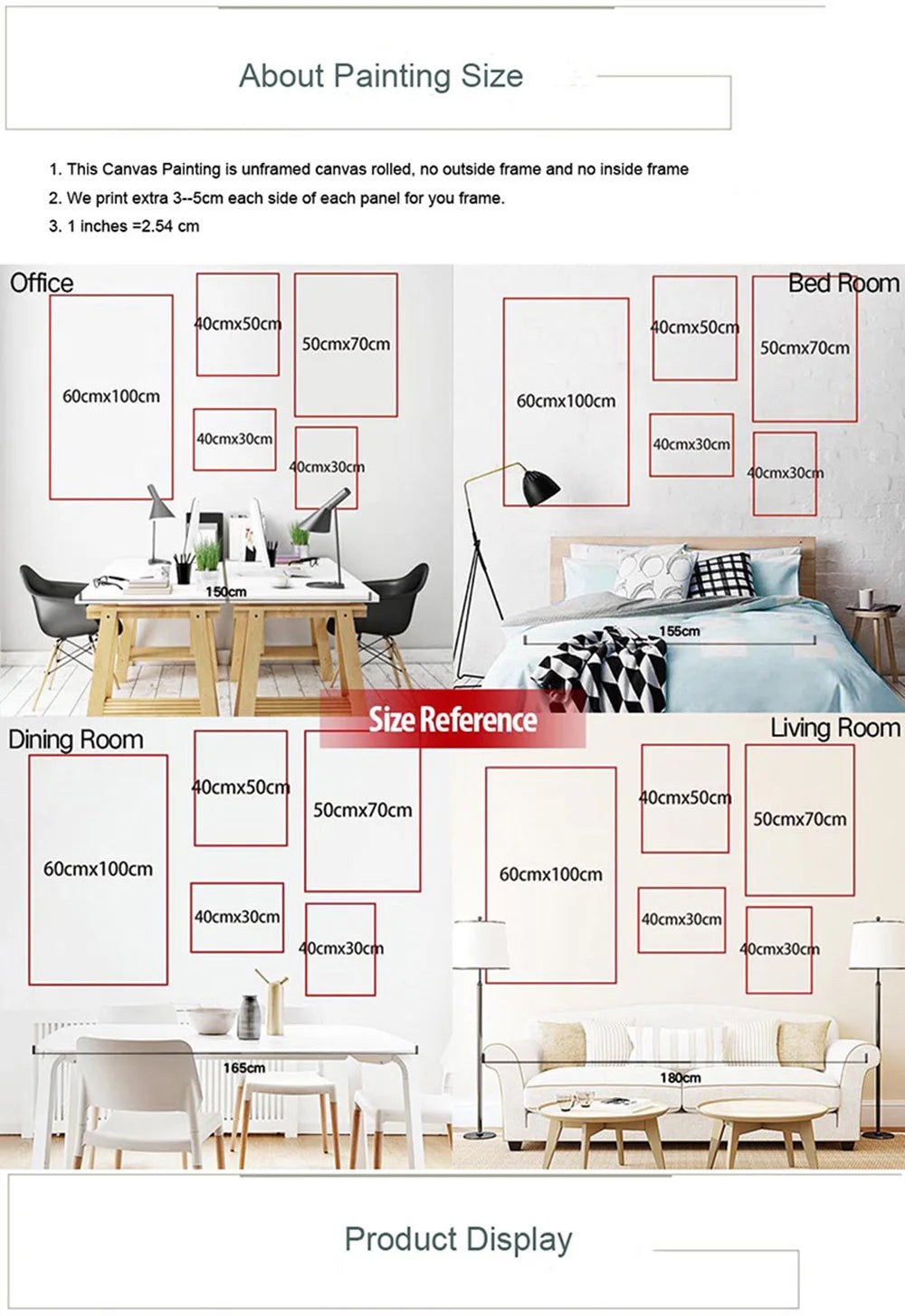 1.We give each canvas painting 3cm extra white edge each side of framing,If you don’t need white borders or need a white borders with other sizes, please leave a message when you order