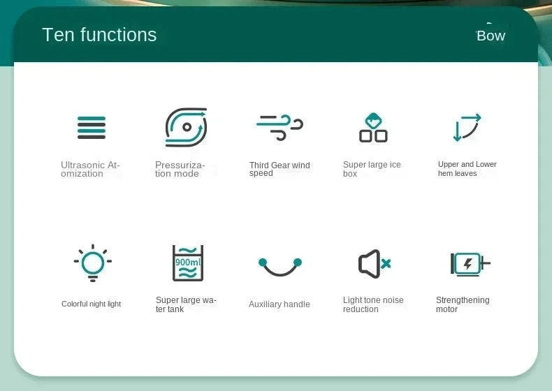 Ultrasonic atomization pressurization mode with three levels of wind speed, super large ice box upper and lower swinging blades