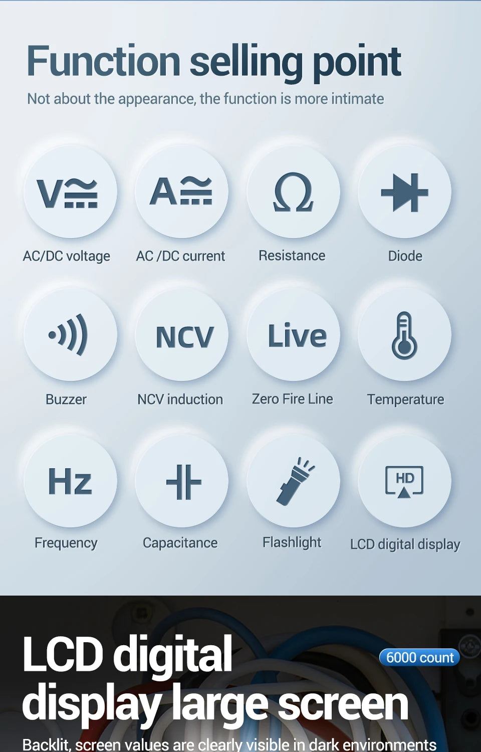 6000 Counts Intelligent AC DC Voltage Current Multimeter Test Tools