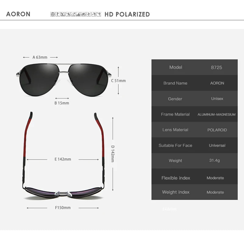 AORON Mens Polarized Sunglasses Classic Pilot Sun Glasses Anti-Reflective Coating Lens Alloy Frame Driving Sunglasses Men