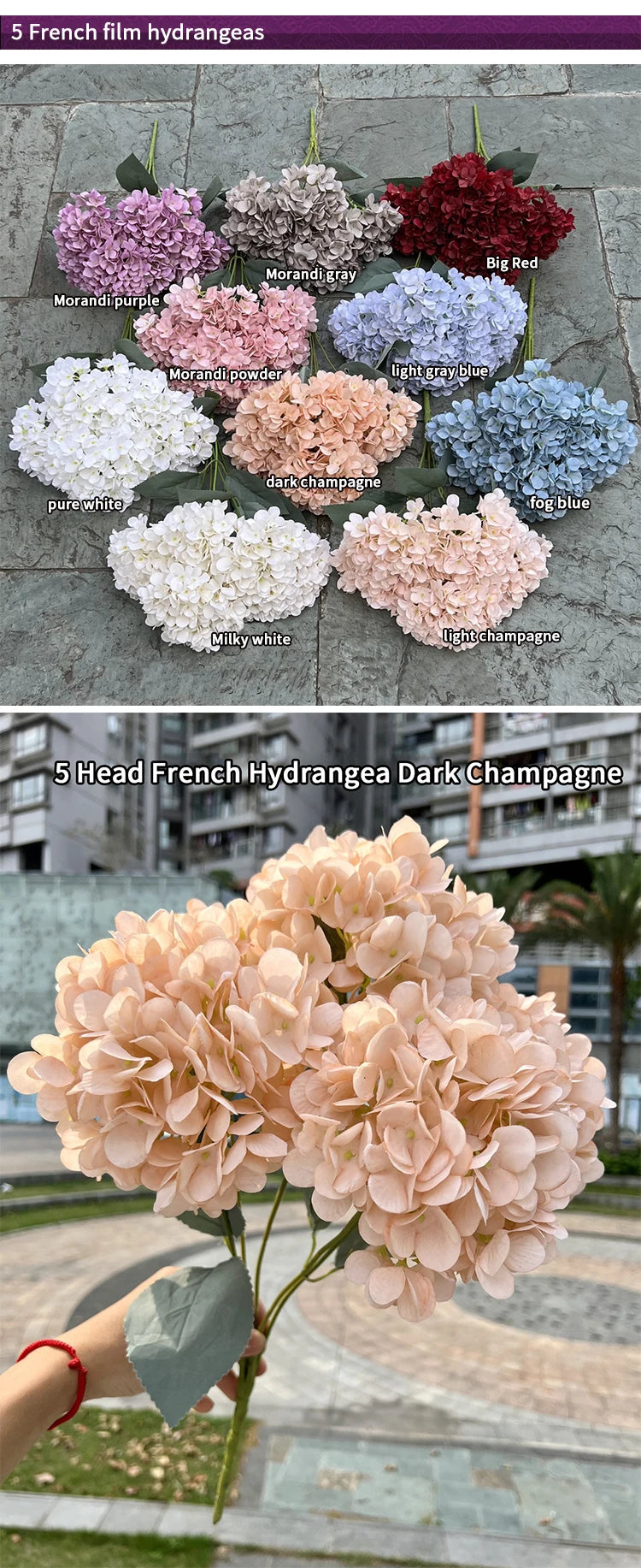 Size: total length about 50cm/19.69in, 5 big hydrangea heads, head diameter about 15cm/5.9in