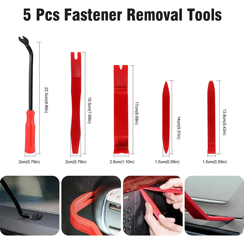2.Removal tools kits, works great for car audio/radio system installing or removing, door panel, moldings, emblems, window trims or automotive interior repairing and furniture restoration.