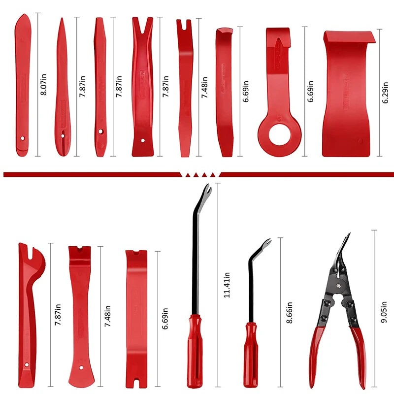 We offer a durable and easy-cleaned storage bag to contain all trim tools in it. It folds up nicely and has velcros to keep tools orderly, making the entire set portable while moving to various occasions! A Must Have For Car Lovers and Modifications!