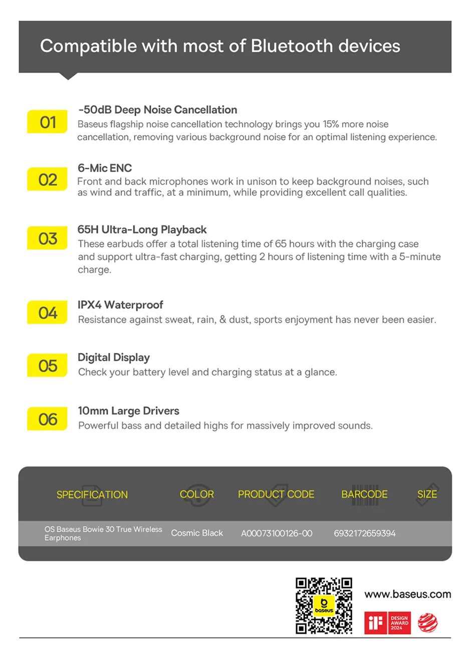 Baseus flagship noise cancellation technology brings you 15% more noise cancellation,removing various background noise for an optimal listening experience