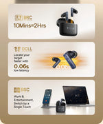 These earbuds offer a total listening time of 65 hours with the charging case and support ultra-fast charging,getting 2 hours of listening time with a 5-minute charge