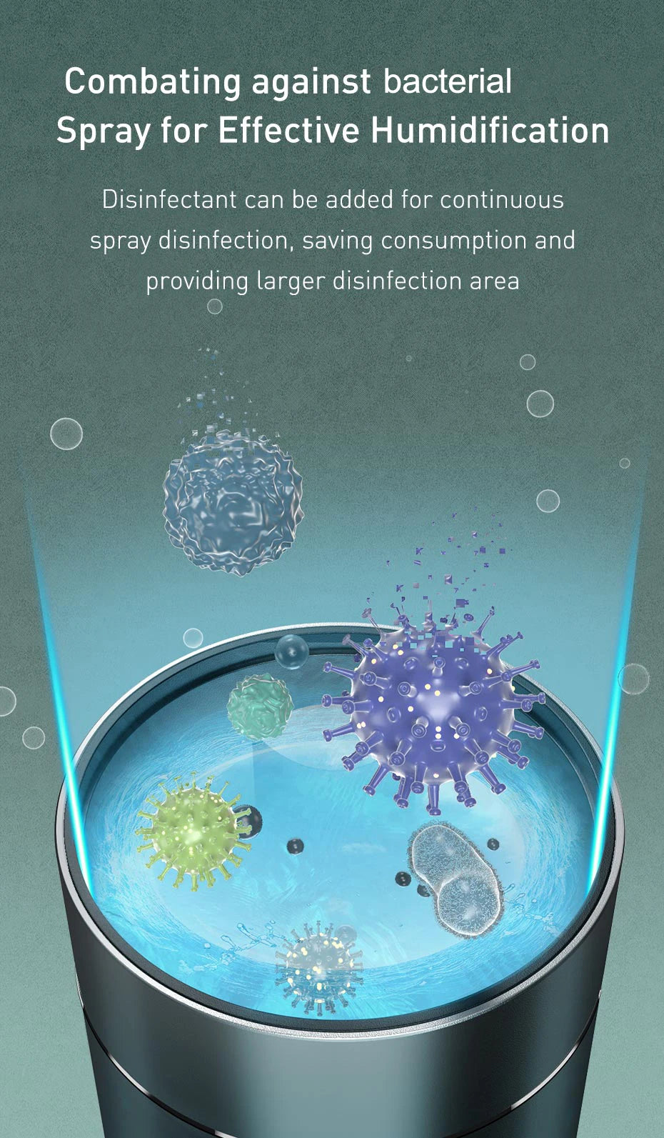 Disinfectant can be added for continuous spray disinfection, saving consumption and providing larger disinfection area
