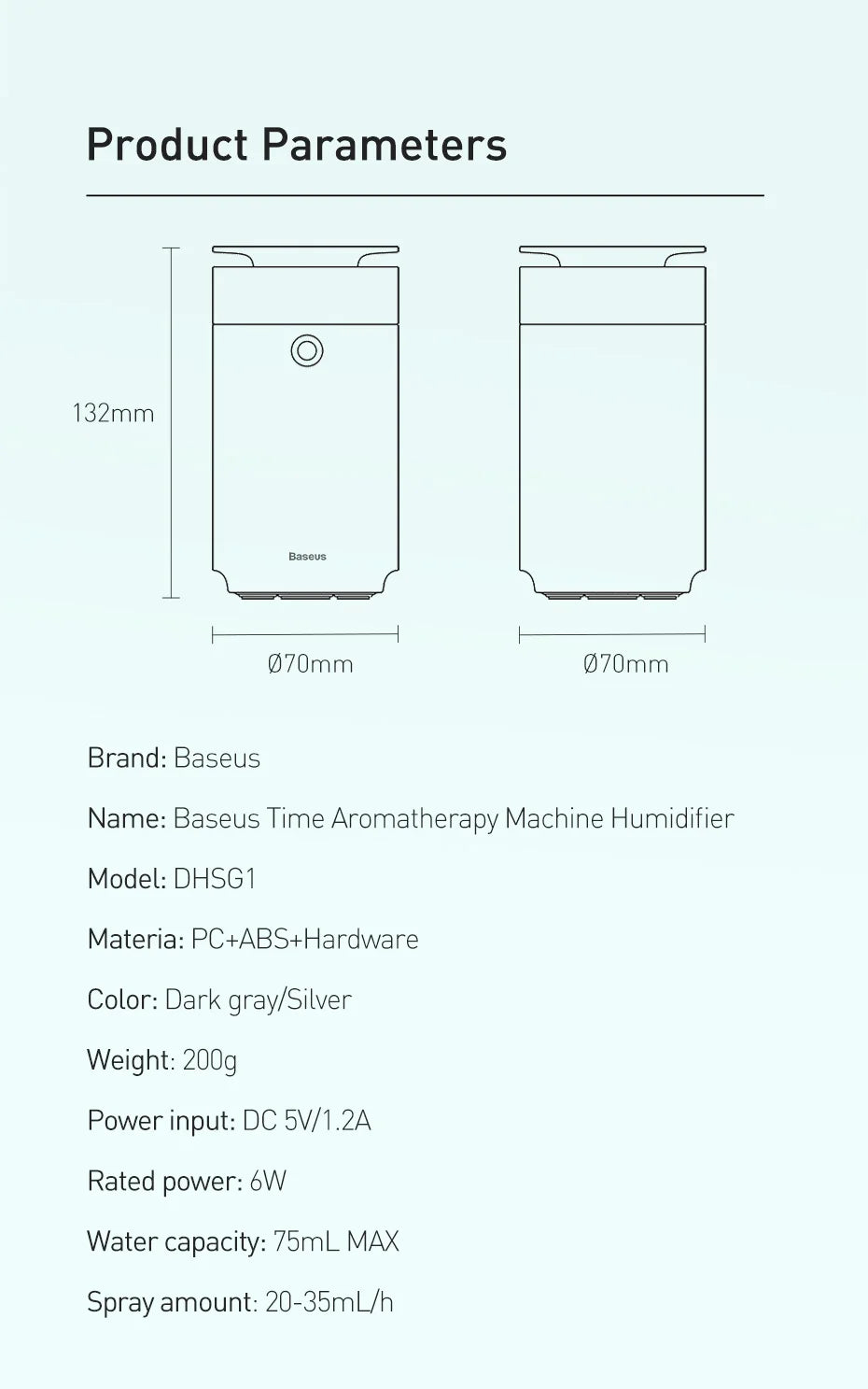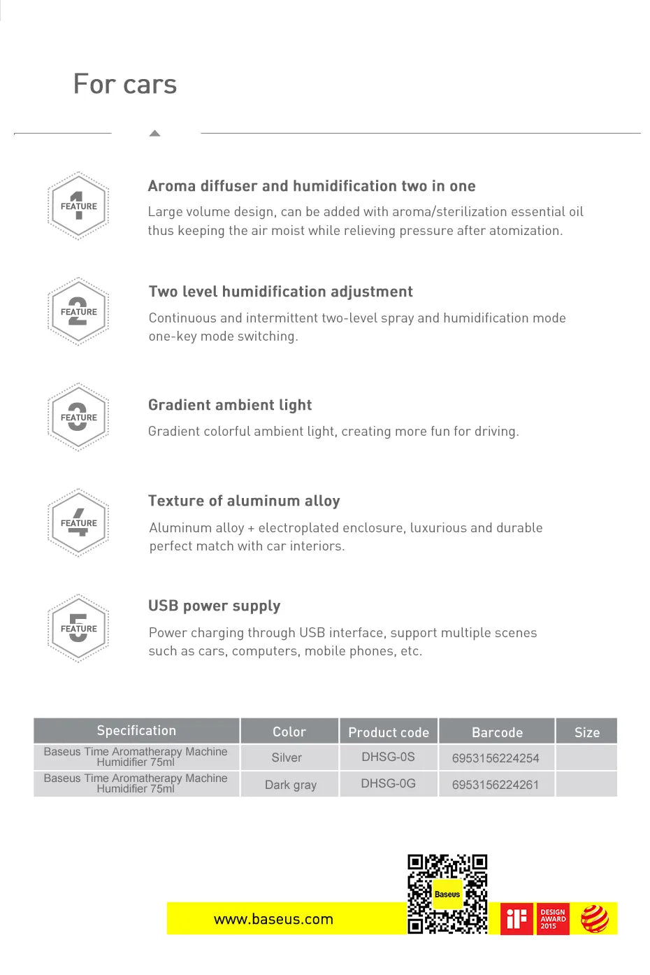 Baseus Car Diffuser Humidifier Auto Air Purifier Aromo Air Freshener with LED Light For Car Aroma Aromatherapy Diffuser