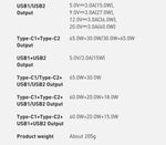 Type C 1 + Type C 2 + USB 2 Output: 60W + 20W + 18W