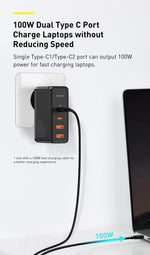 Single Type C 1 or single Type C 2 can reach up to 100W power for fast charging laptop.