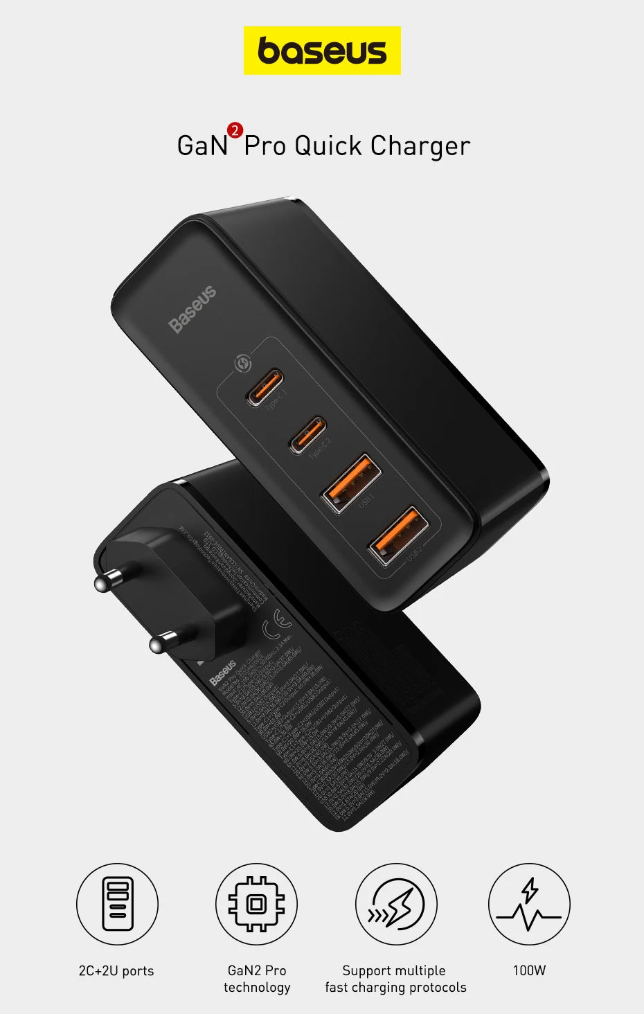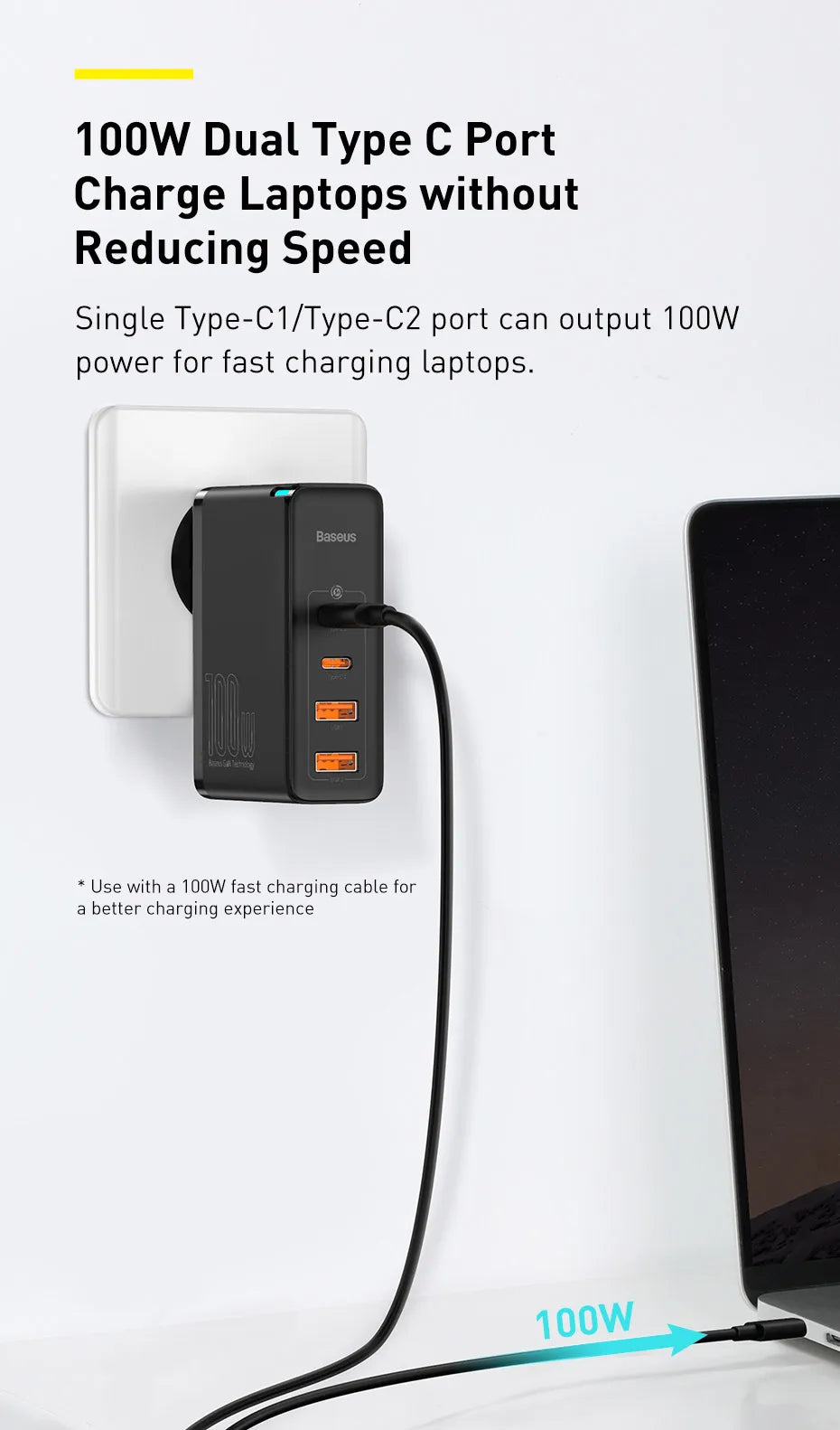 Baseus GaN Charger 100W PD QC 4.0 3.0 USB Fast Charger Type C Quick Charging USB C Phone Charger for iPhone 12 Pro Max Macbook