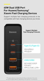 60W Dual USB Port for Huawei/Samsung/Xiaomi Fast Charging Devices