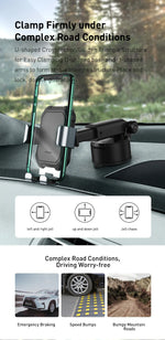 Silicone pad on the backing plate /clamp arm/ bottom base Emergency braking does not damage the phone, anti-shock and pressure-reducing