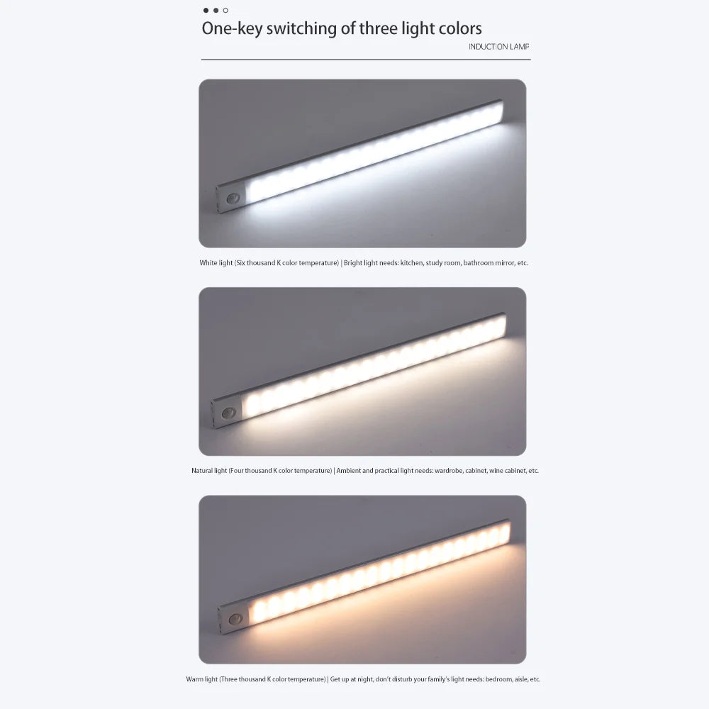 Bedroom Night Light Motion Sensor Lights Wireless USB Under Cabinet Light For Kitchen Cabinet Bedroom Wardrobe Indoor Lighting