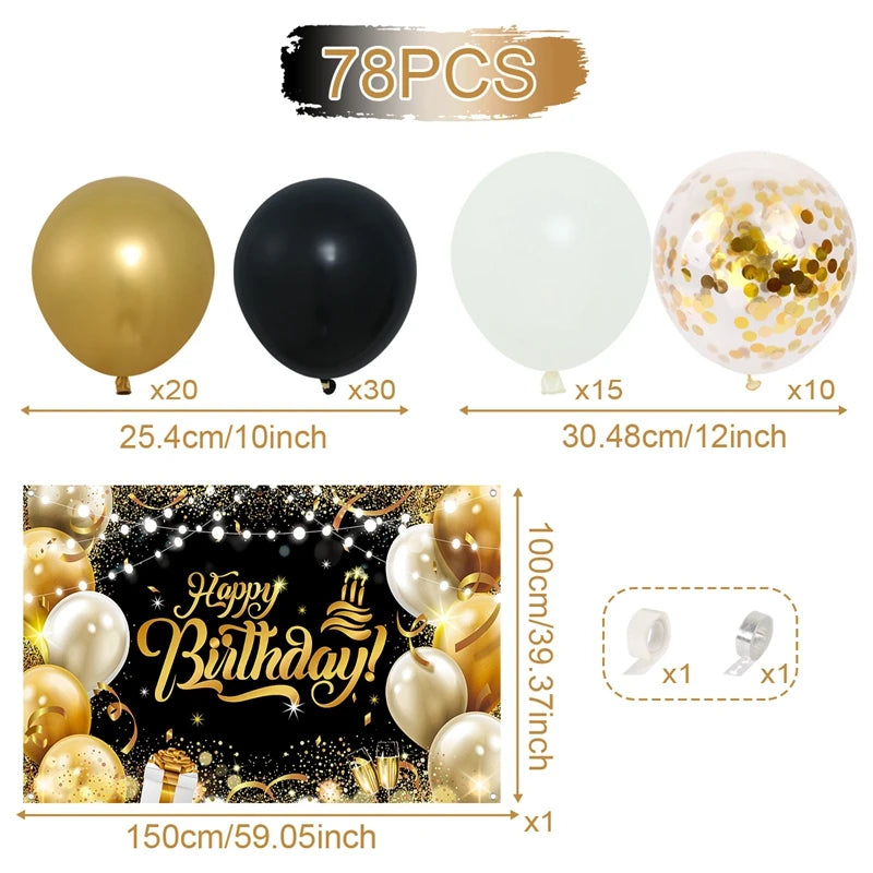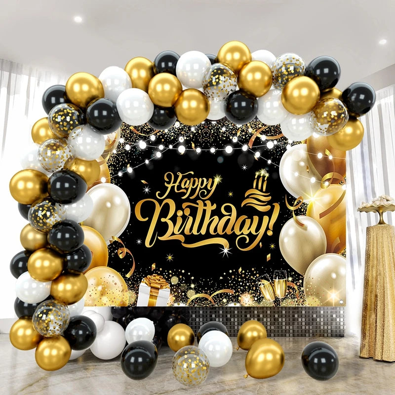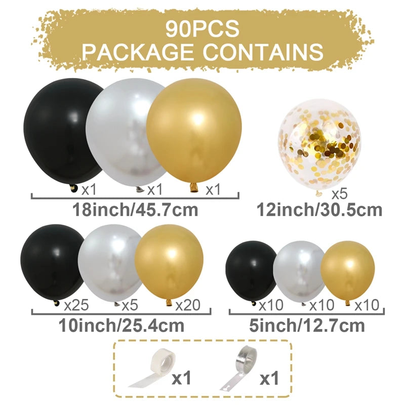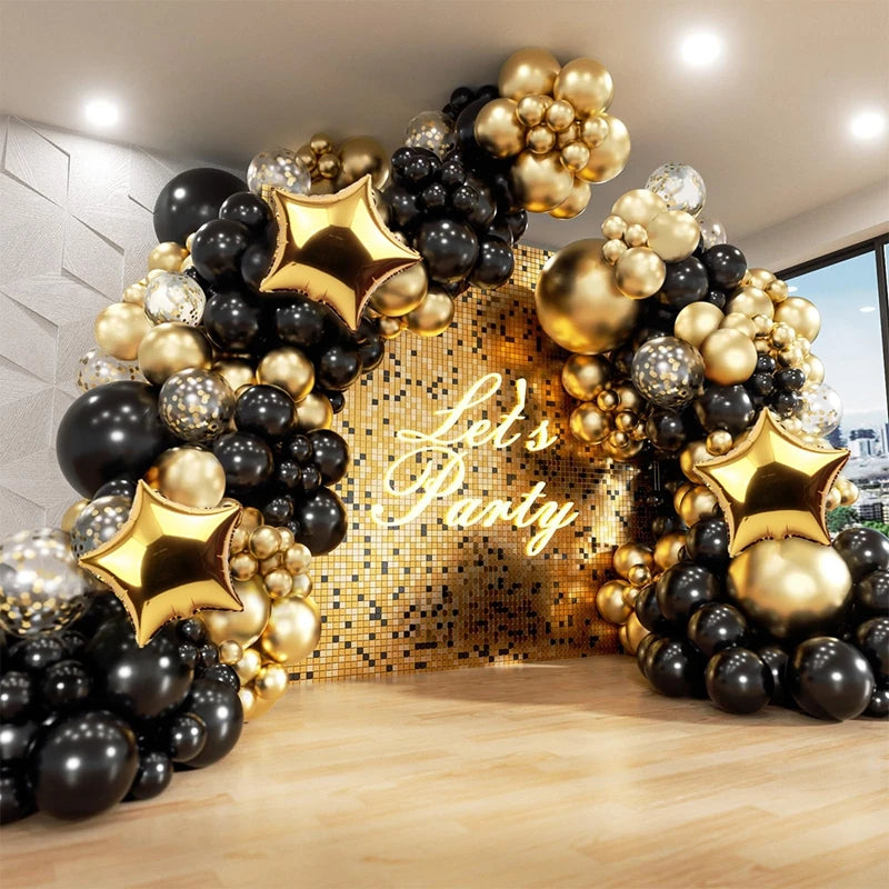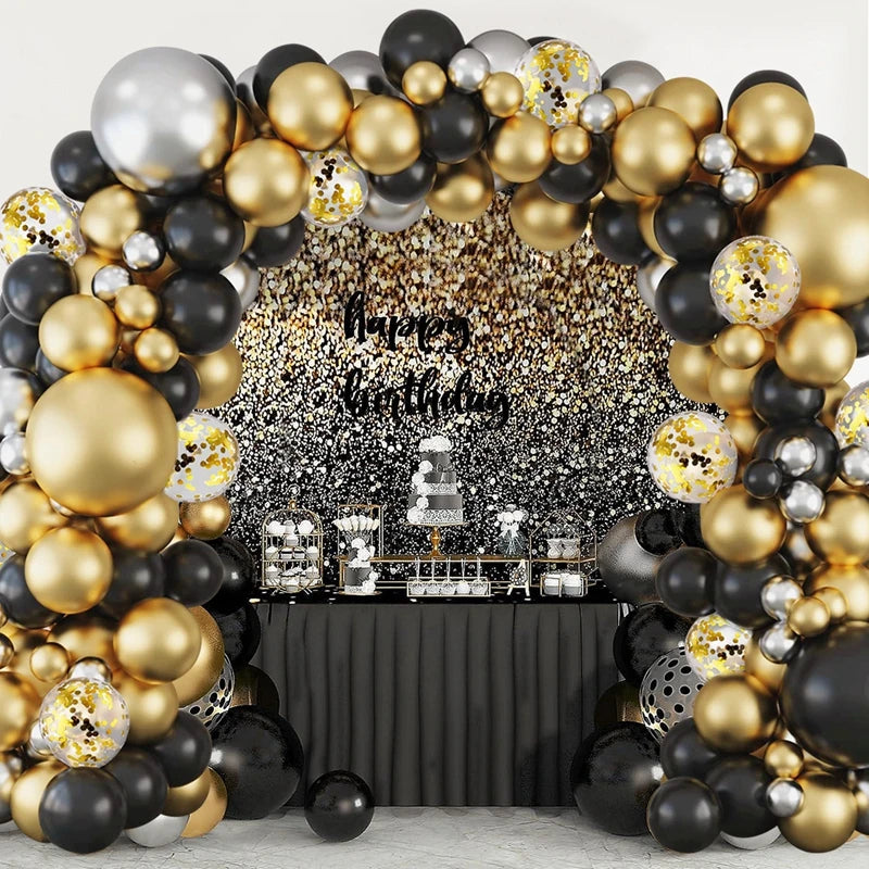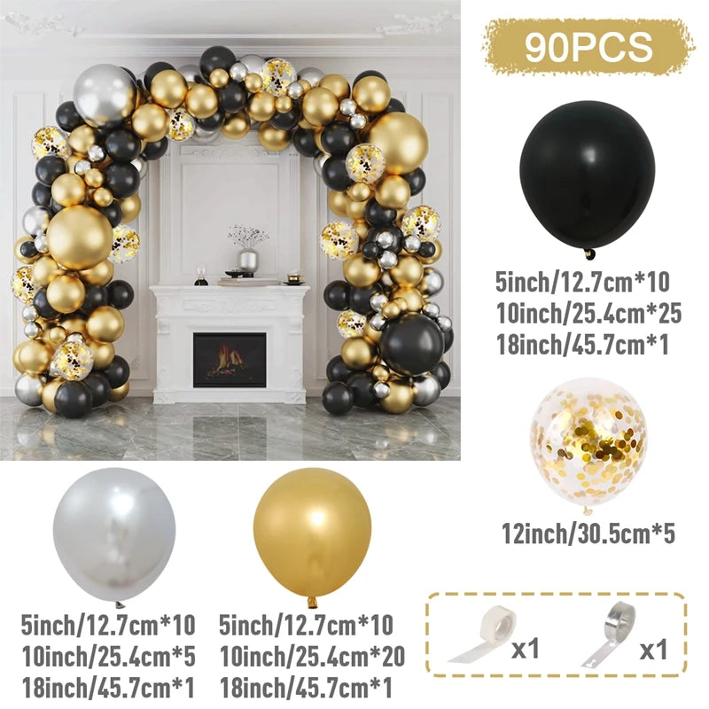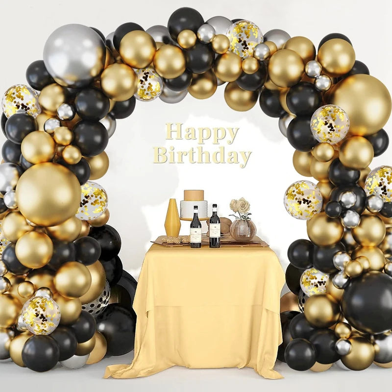 Black and Gold Balloons Garland Arch Kit - Party Decoration