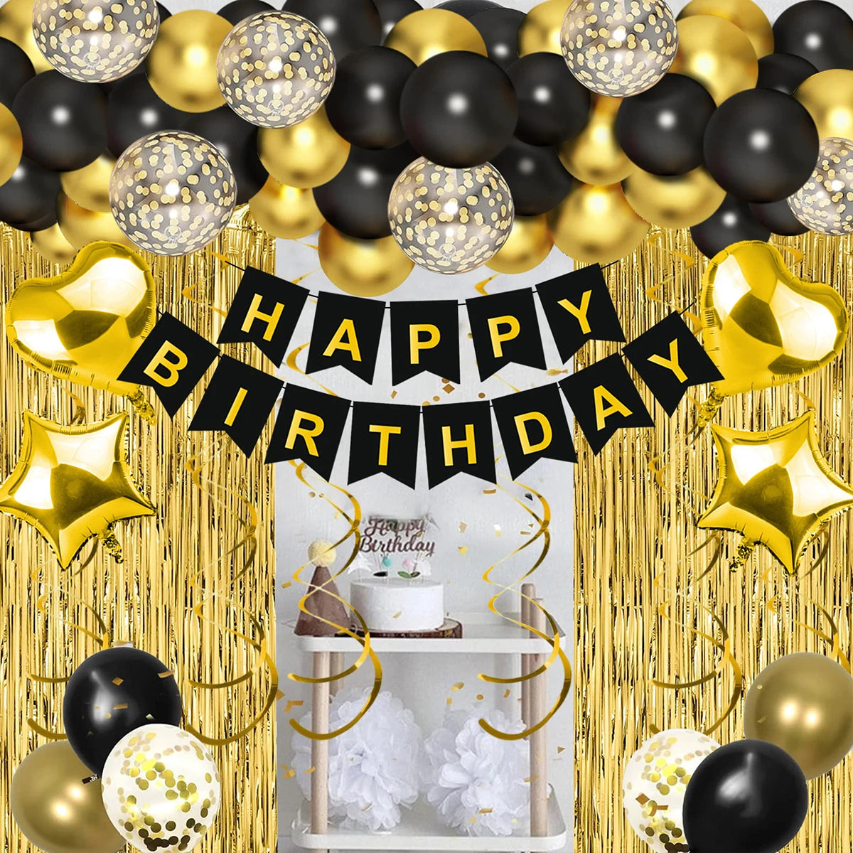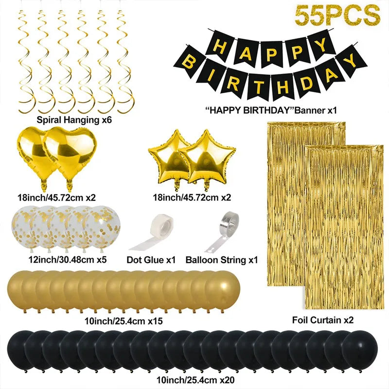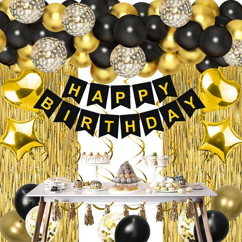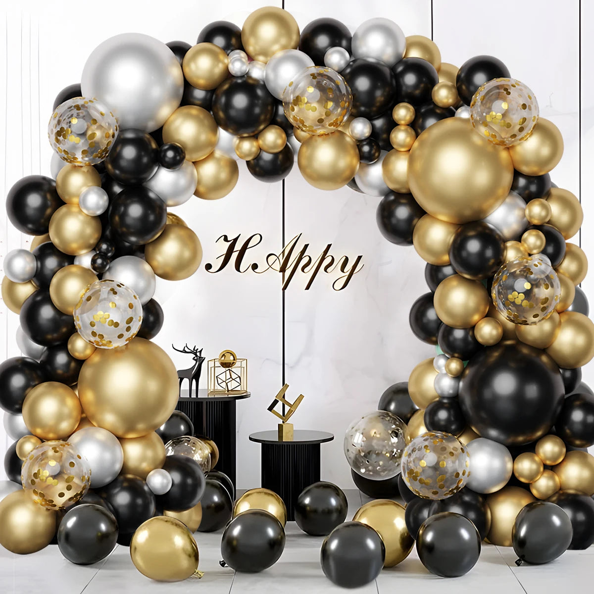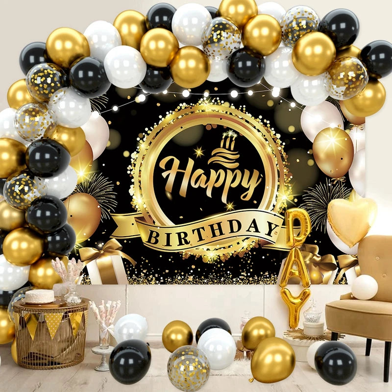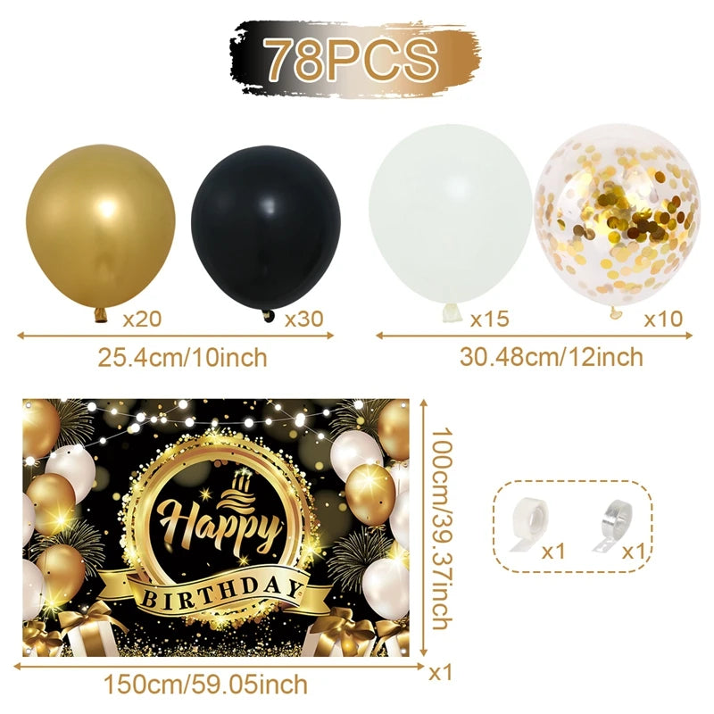 Black and Gold Balloons Garland Arch Kit - Party Decoration