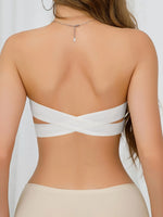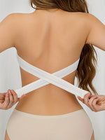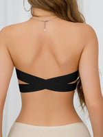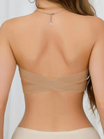Bra with side clasps, strapless nylon knit fabric - removable padding, crisscross strap details