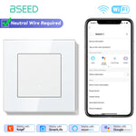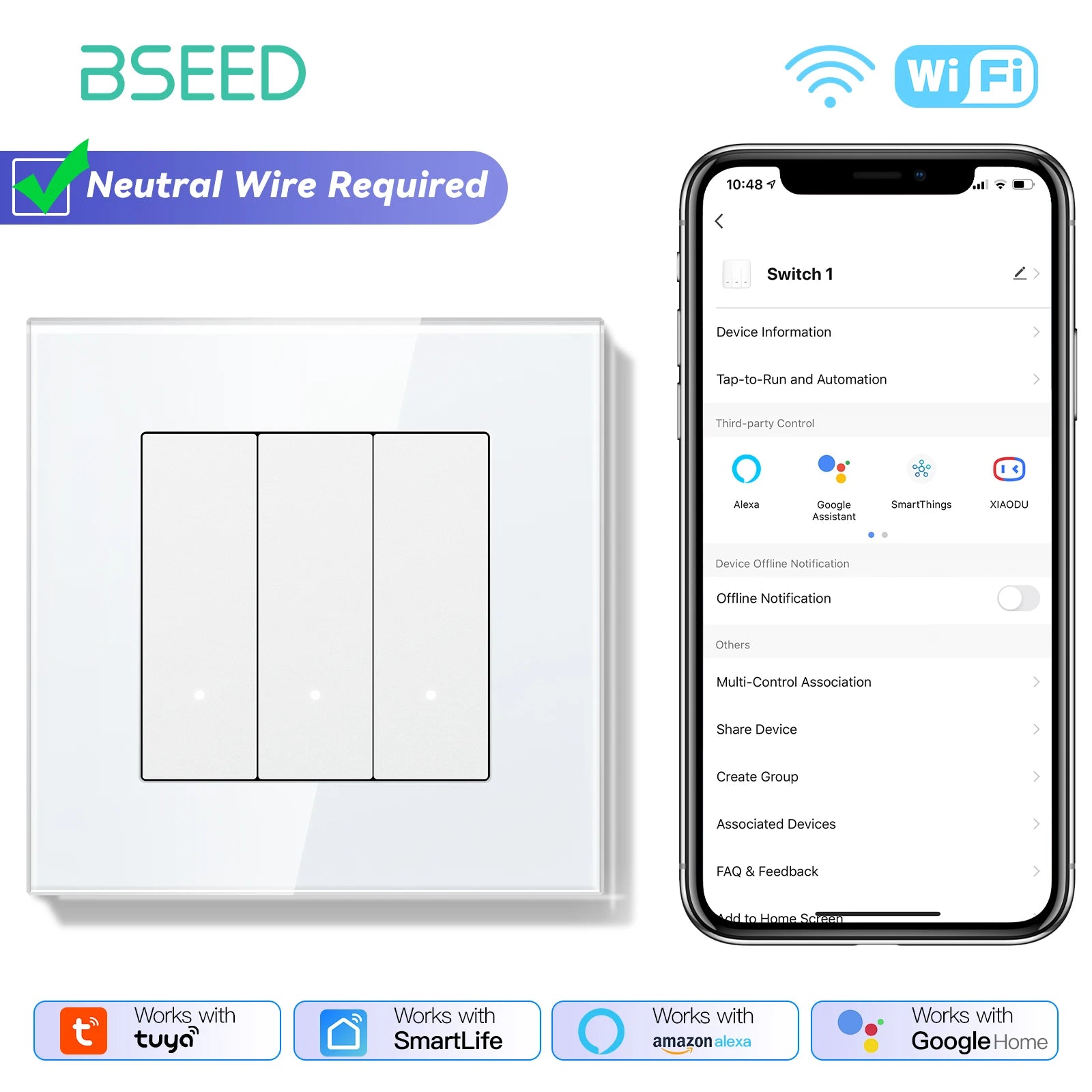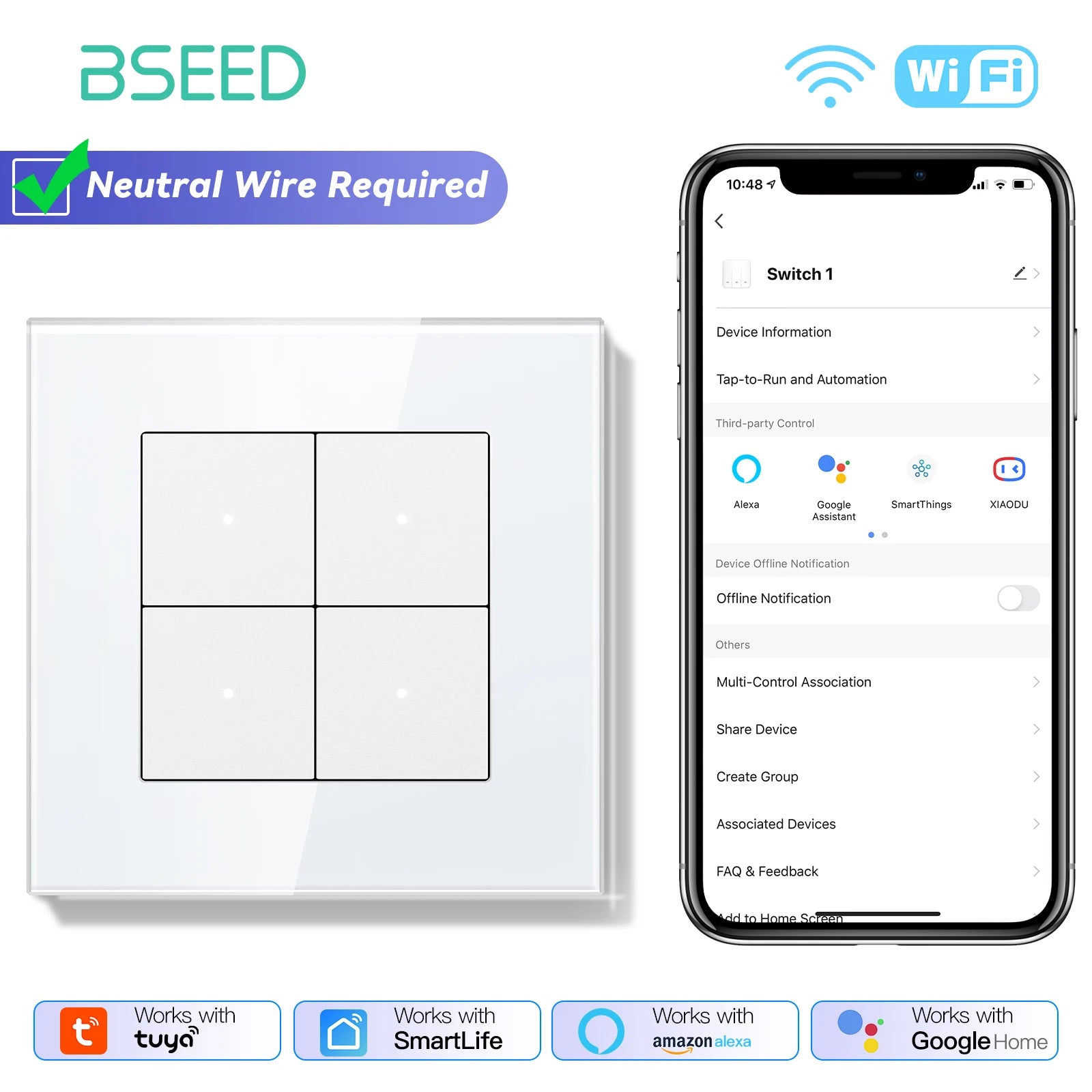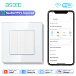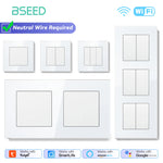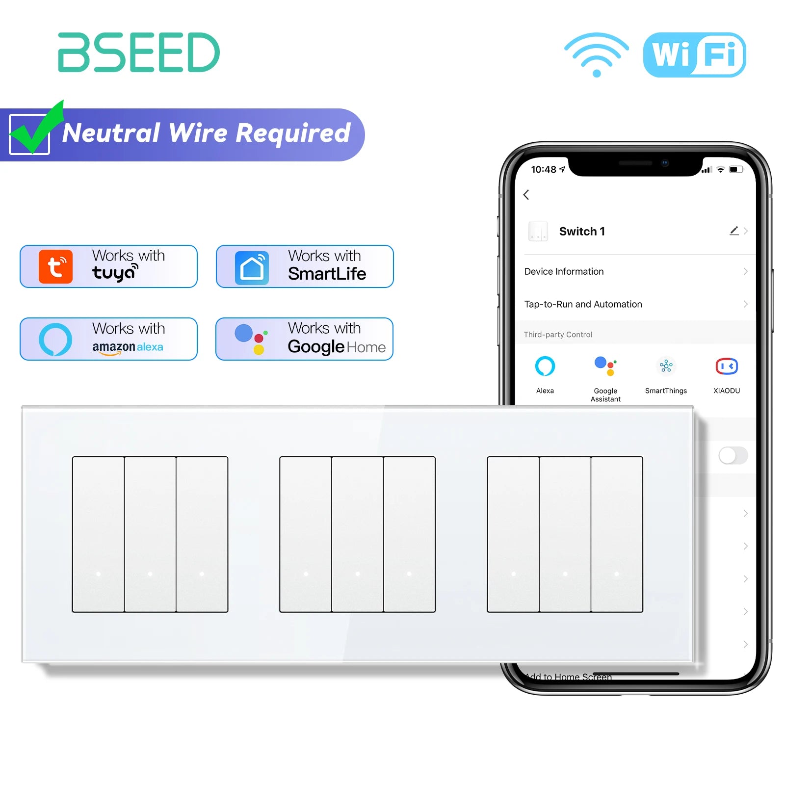 BSEED WIFI Click Switches Series 1/2/3/4Gang Wall Smart Light Switches Yellow Backlight Glass Frame Tuya APP Switch EU Standard
