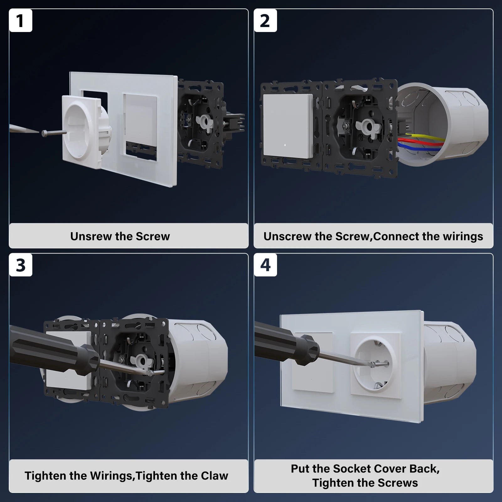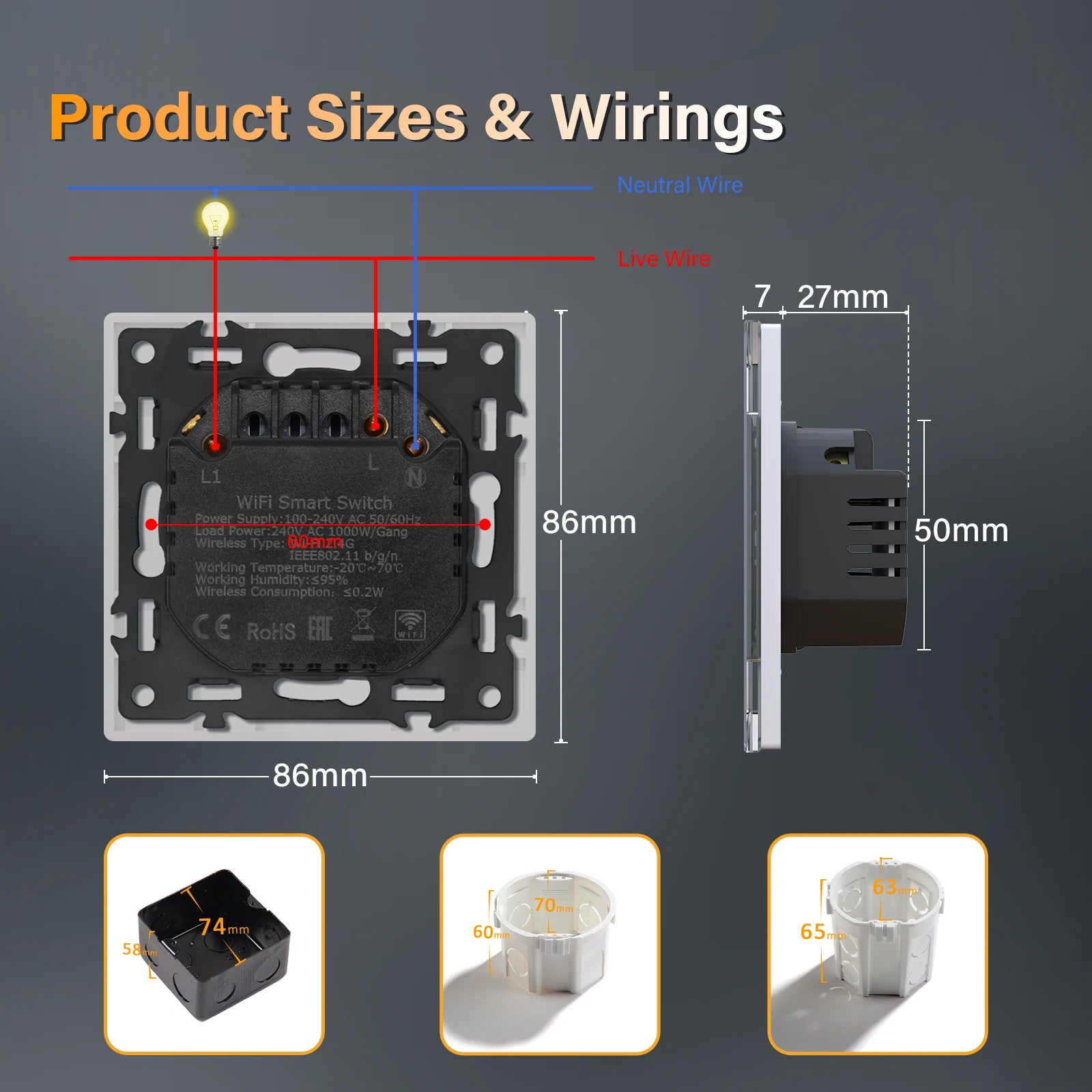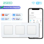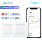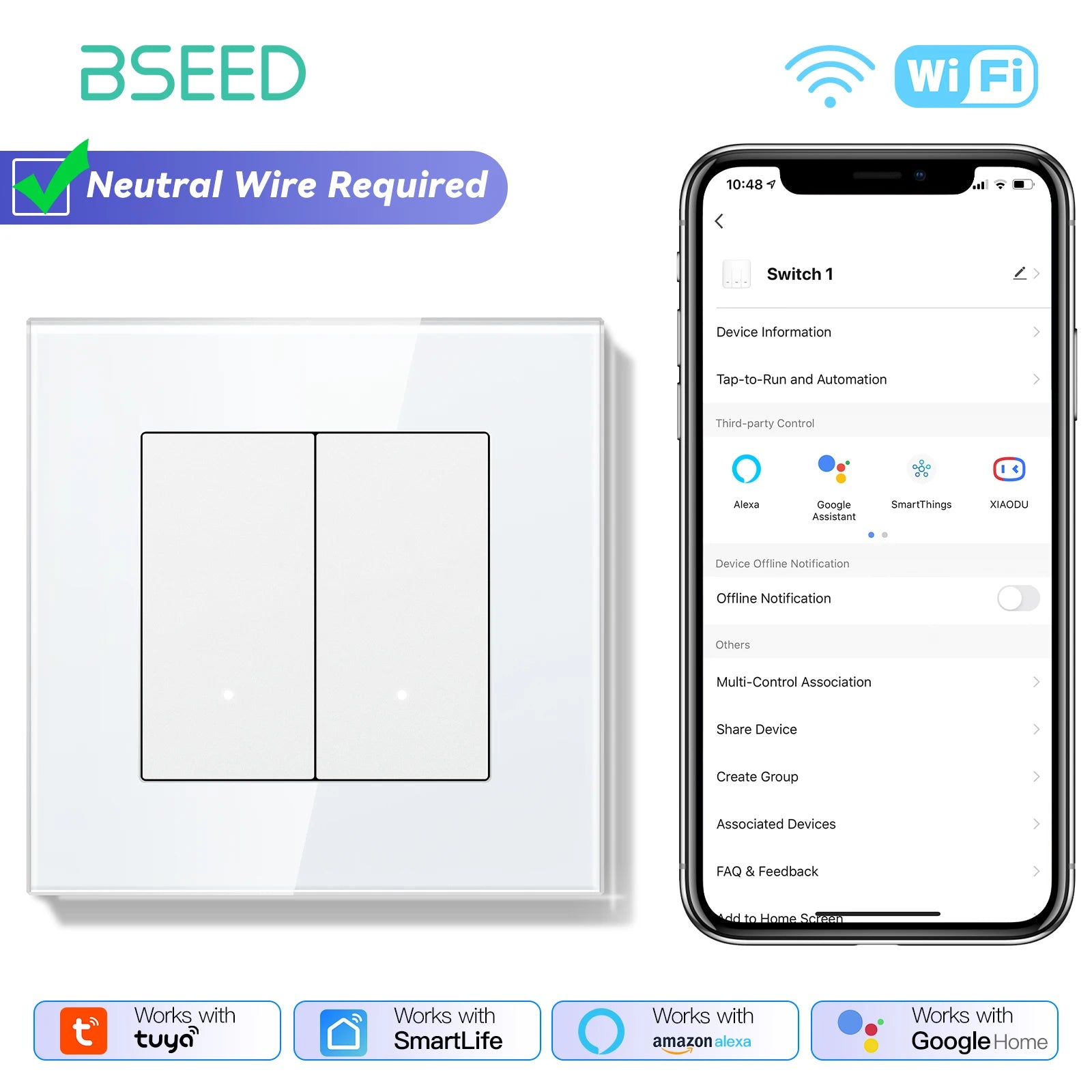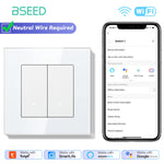 BSEED WIFI Click Switches Series 1/2/3/4Gang Wall Smart Light Switches Yellow Backlight Glass Frame Tuya APP Switch EU Standard