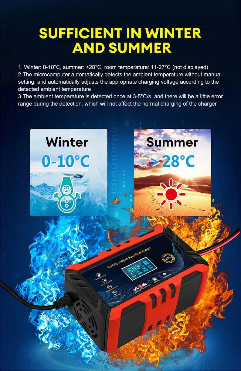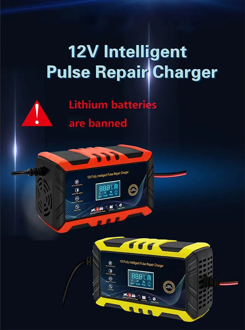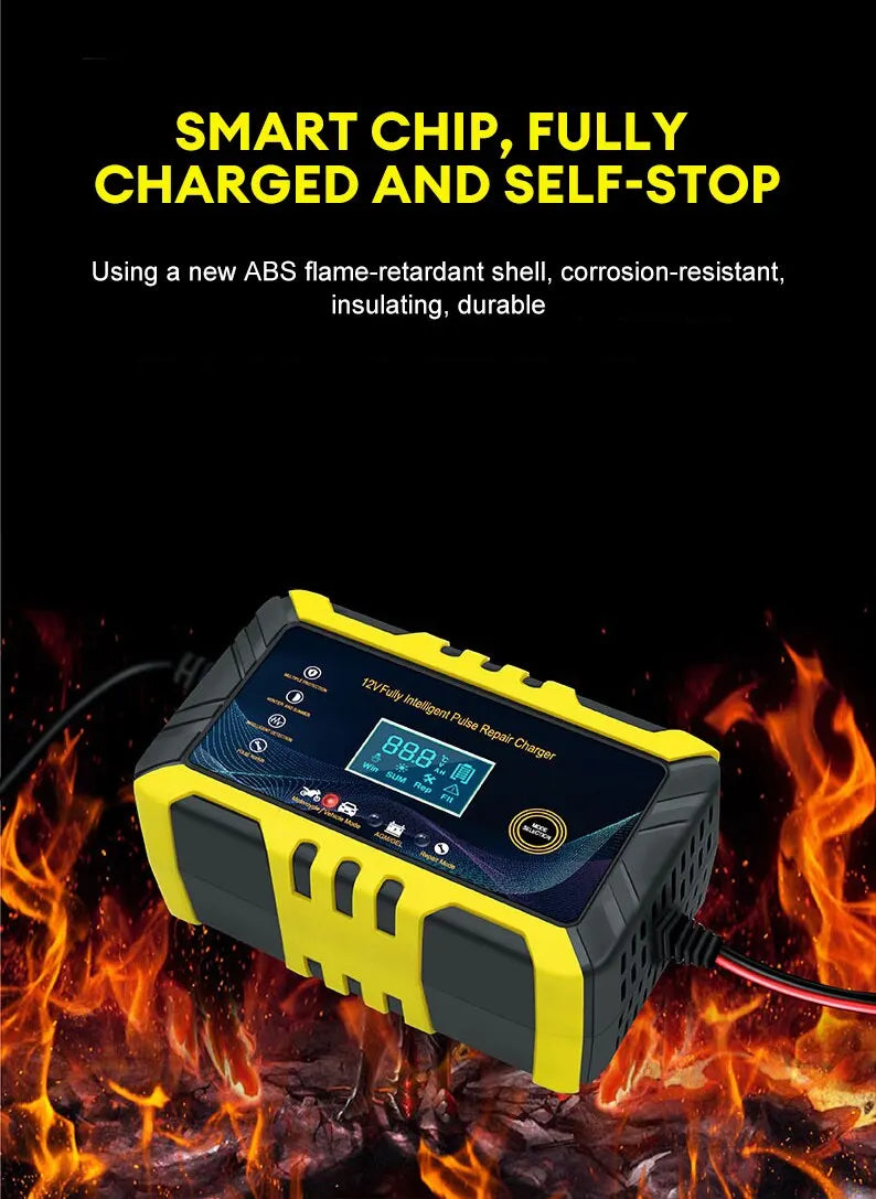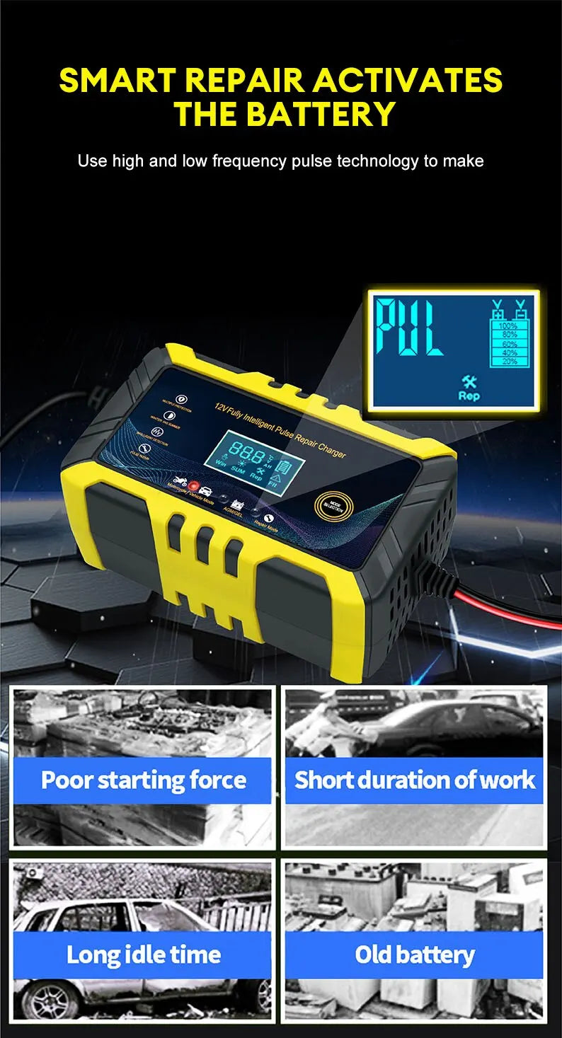 Car Battery Charger - Intelligent Pulse Repair LCD Display