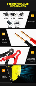 • LCD Display :The charger comes with an LCD display that shows the battery's charging status, making it easy to monitor the charging process.