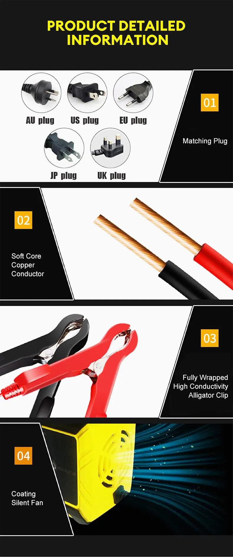 • 12V Compatibility :The charger is compatible with 12V batteries, making it suitable for use with a wide range of vehicles.