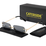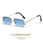 CATERSIDE Blue Rectangular Sunglasses Men Rimless Metal Fashion Square Sun Glasses For Women Gradient Lens Outdoor Eyewear UV400