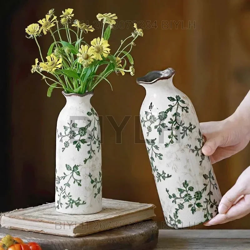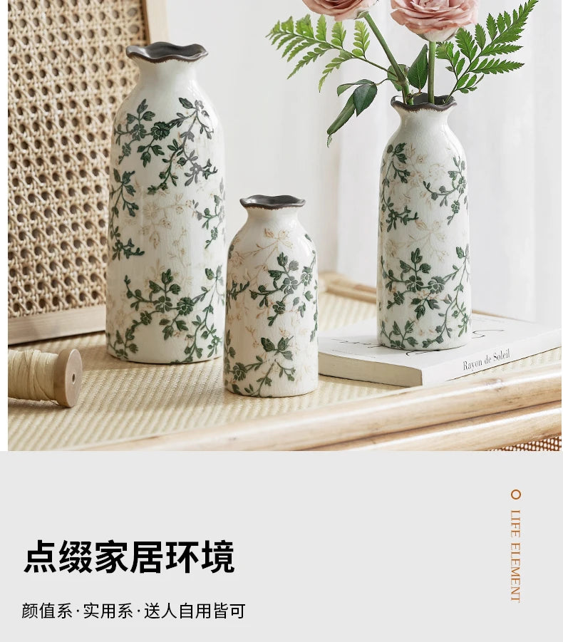 Ceramic Vase For Home Decoration Living Room Decor Hydroponic Flower Arrangement Pastoral Style Green Vase Flower Pot For Plant