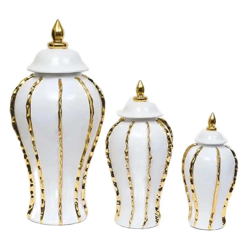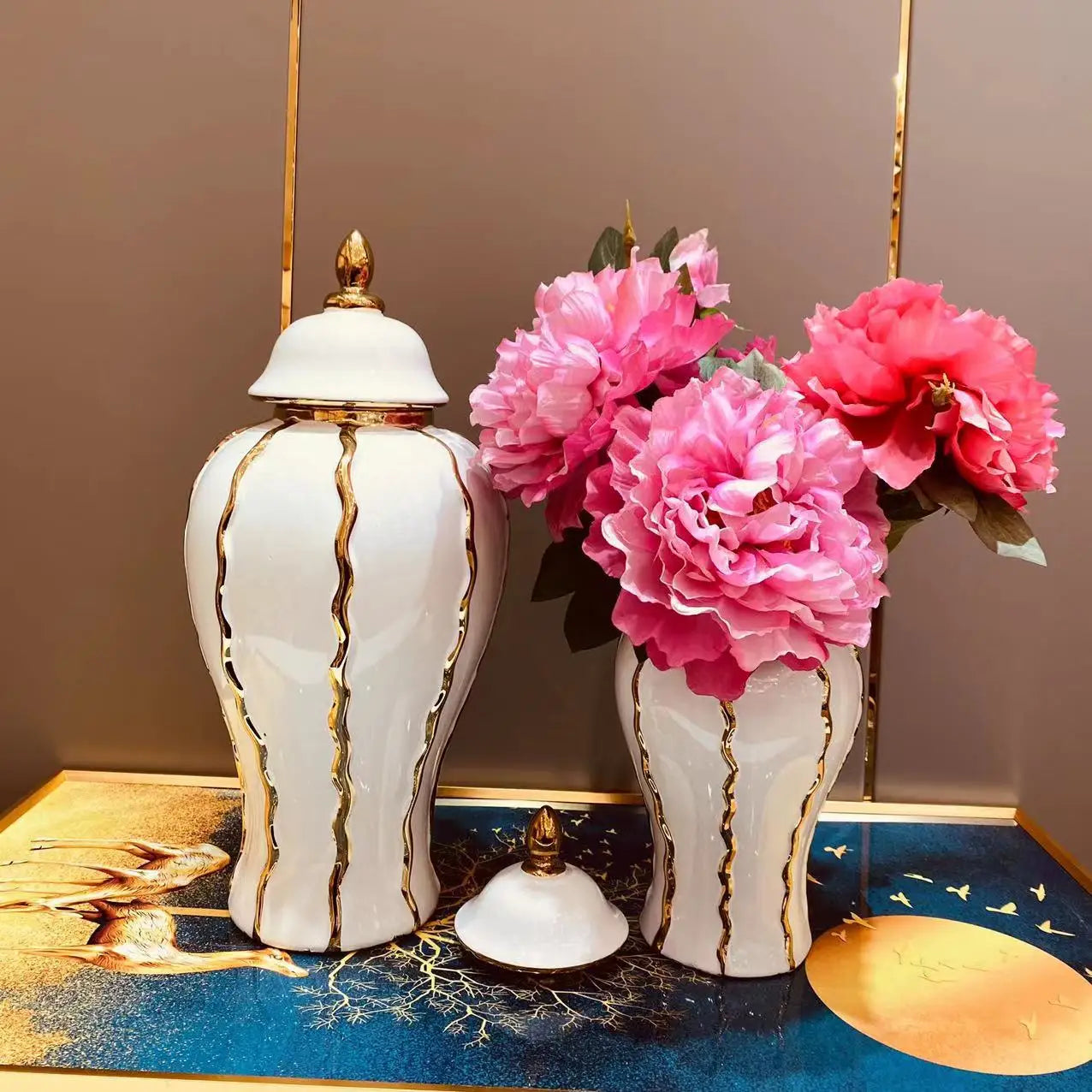 Ceramic Vase Universal Jar Ceramic Gold-plated Striped Storage Jar with Lid Tabletop Decoration Container Storage Jar