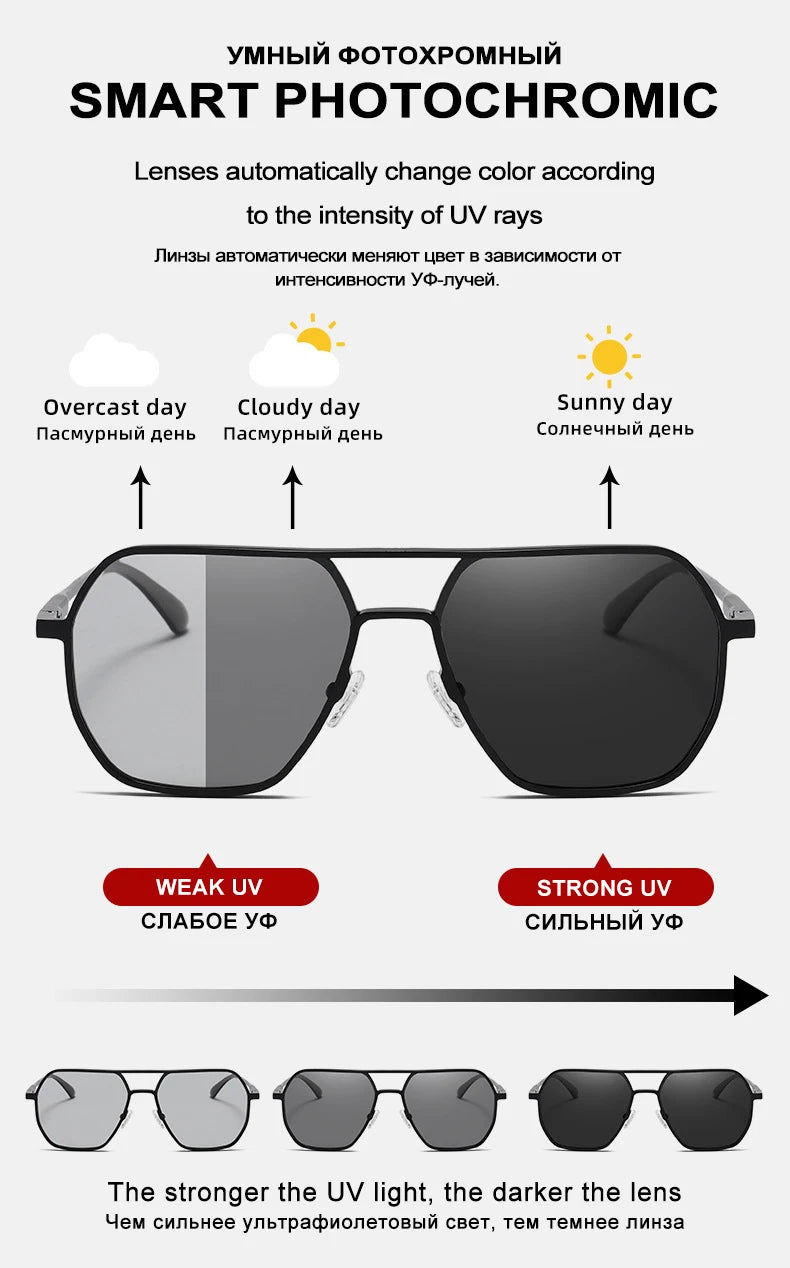 CLLOIO New Fashion Aluminum Photochromic Sunglasses Men Women Polarized Sun Glasses Chameleon Anti-glare Driving Oculos de sol