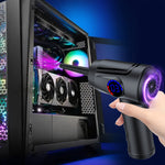[LCD display and LED light]- Compressed air dust collector is equipped with an LCD display. The outer ring shows the battery level of the electric air duster, and the inner ring digits show the air speed gear. With this display, you can more visually how much power is left in the blower and which gear is being used for cleaning. And the LED light design can make it easier to clean in the dark, very practical