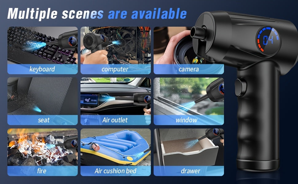 Compressed air duster - Energy-Efficient: Alternative to canned air Compressed Air can be recharged and used repeatedly. It is more energy-efficient and than constantly buying canned air, save money, cordless air dusters electric is a onetime investment, you can have a permanent air duster electric