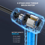 Electric Air Duster Cycle Life>500 cycles Service Life>5000 hours Rechargeable Battery and Fast Charging: The cordless dust collector has a built-in 6000mAh battery, which can run continuously for 15-45 minutes. Comes with USB-C fast charging cable, fully charged within 3 hours, can be charged by computer, mobile power supply, car charger, Connector