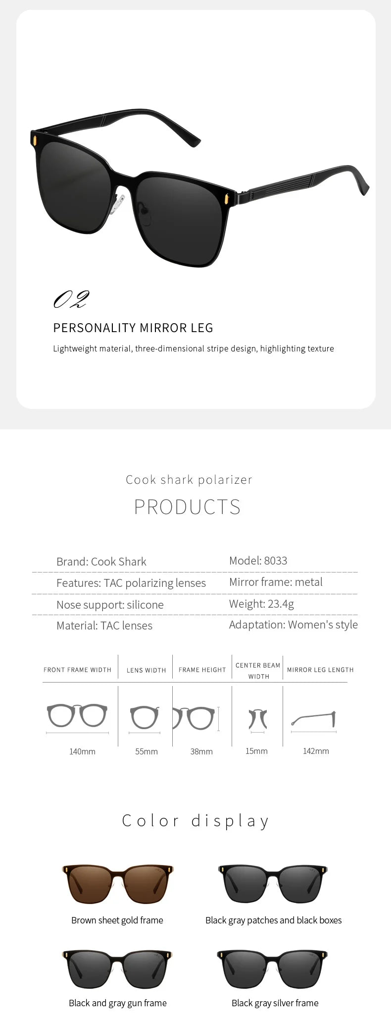 Cook Shark Sunglasses for Women 2023 New Korean Edition Fashion Driving Polarized Sunglasses for Women Advanced Sunshade and Sun