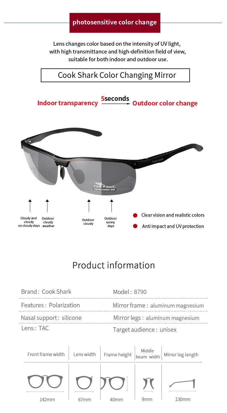 Cook Shark's new polarized sunglasses for men's driving, driver's color changing glasses, fishing sunglasses, high-end feel