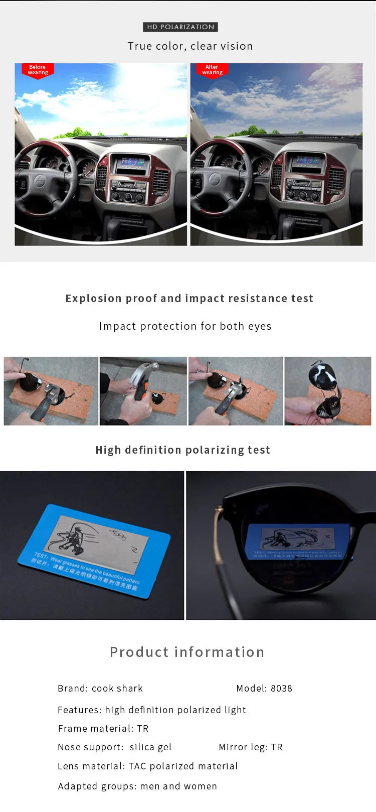 Cookshark sunglasses men and women polarized sunglasses fashion retro driving glasses